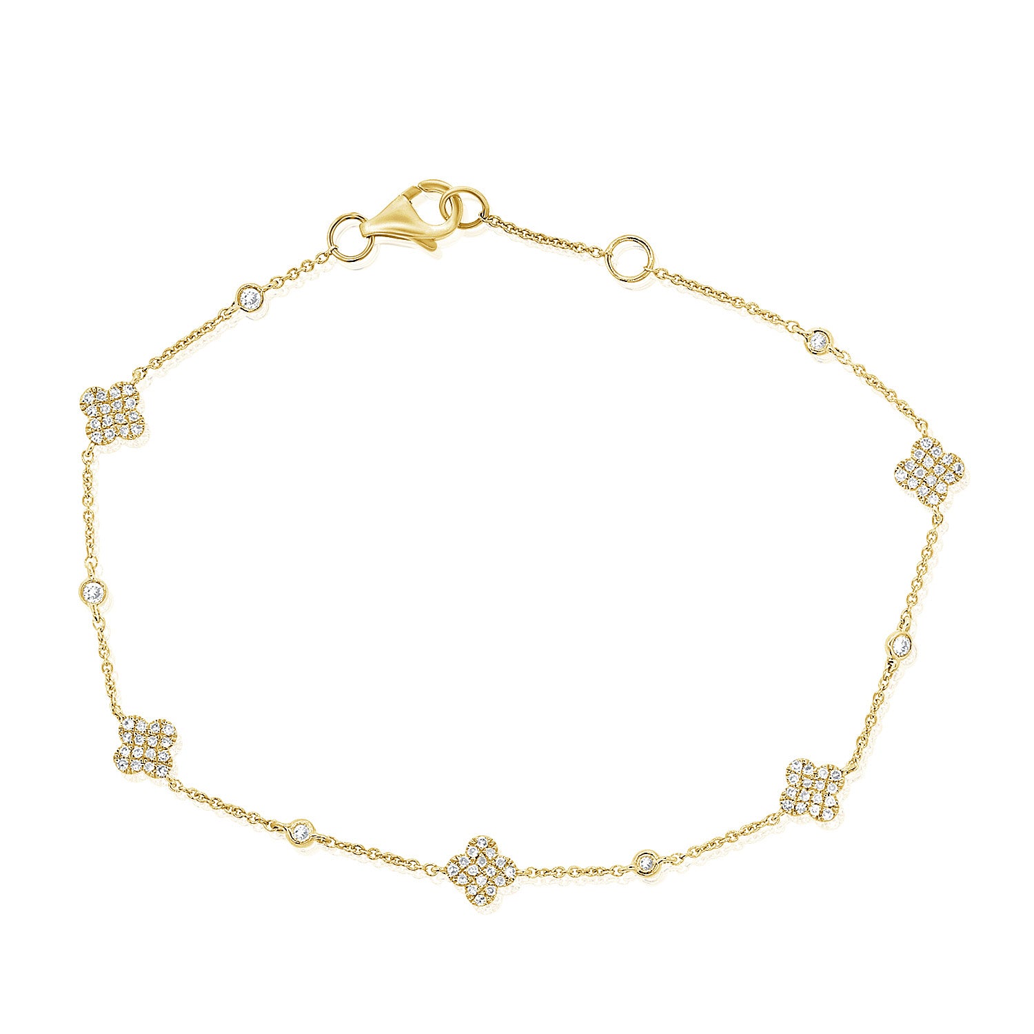 Embrace timeless elegance with this 14K Gold Clover Bracelet, adorned with brilliant diamonds totaling 0.32 carats. The delicate clover motif adds a touch of luck and charm, while the shimmering diamonds enhance its captivating beauty. Available in your choice of 14K white, yellow, or rose gold, this versatile bracelet is perfect for layering or wearing on its own. A sophisticated yet playful addition to any jewelry collection, it brings both grace and sparkle to your everyday look. Secure with a refined clasp for a comfortable, luxurious fit.