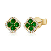 14K Gold Emerald and Diamond Clover Stud Earrings 0.54 Carats, 6.4mm