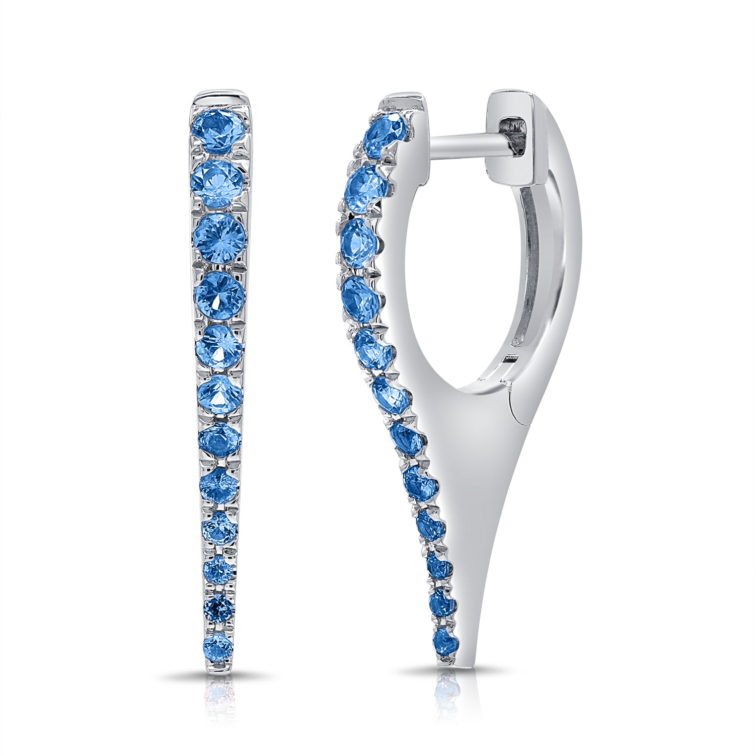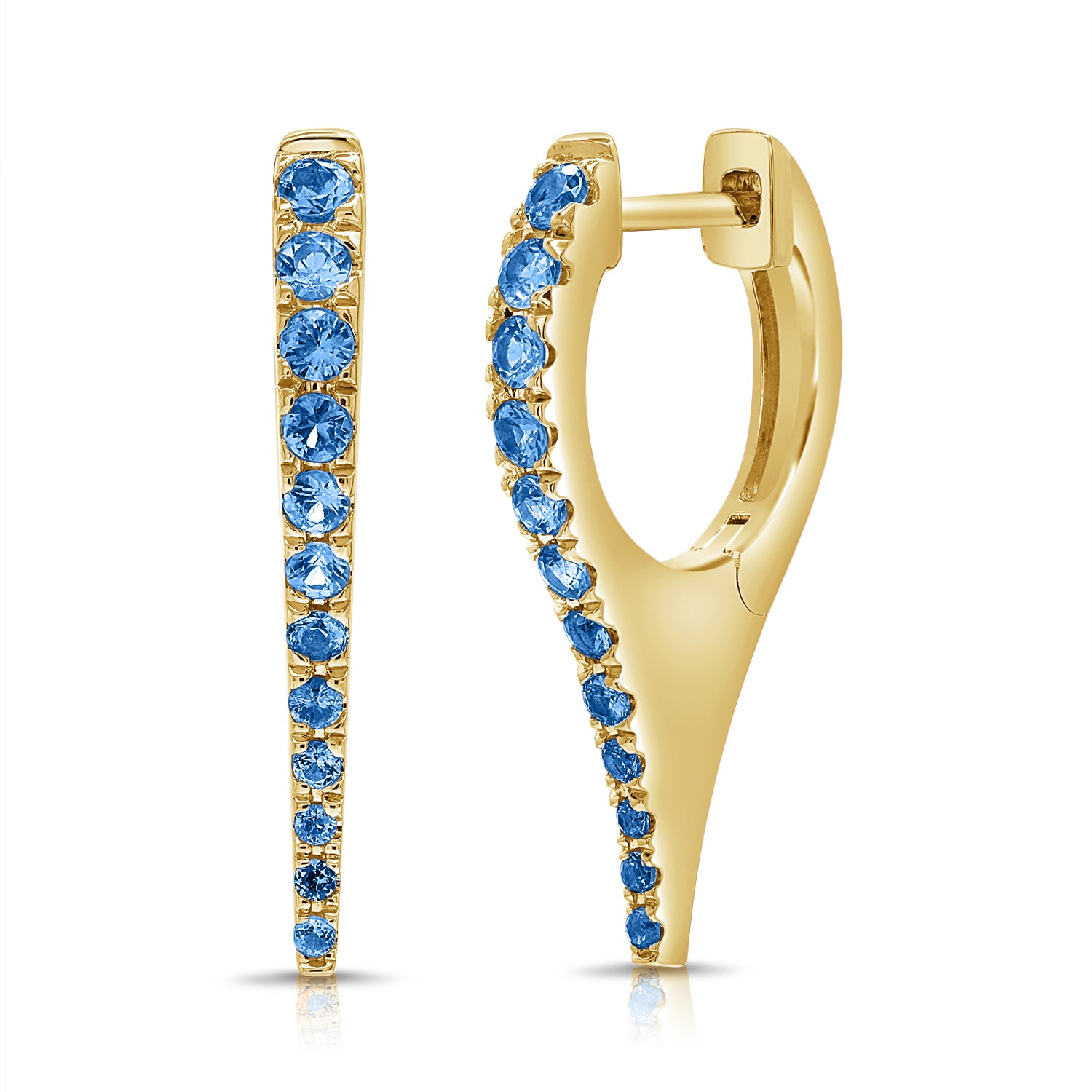 Add a pop of color with these 0.48 carat sapphire huggie earrings, crafted in 14K gold. Featuring tapered hoops with vibrant blue sapphires (21mm x 12.5mm), they balance modern elegance with timeless style. Available in white, yellow, or rose gold- a perfect for gifting or everyday wear.
