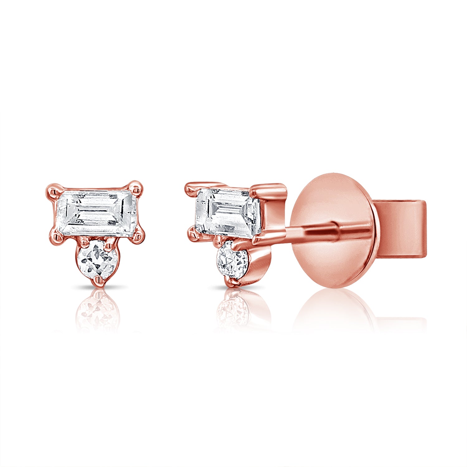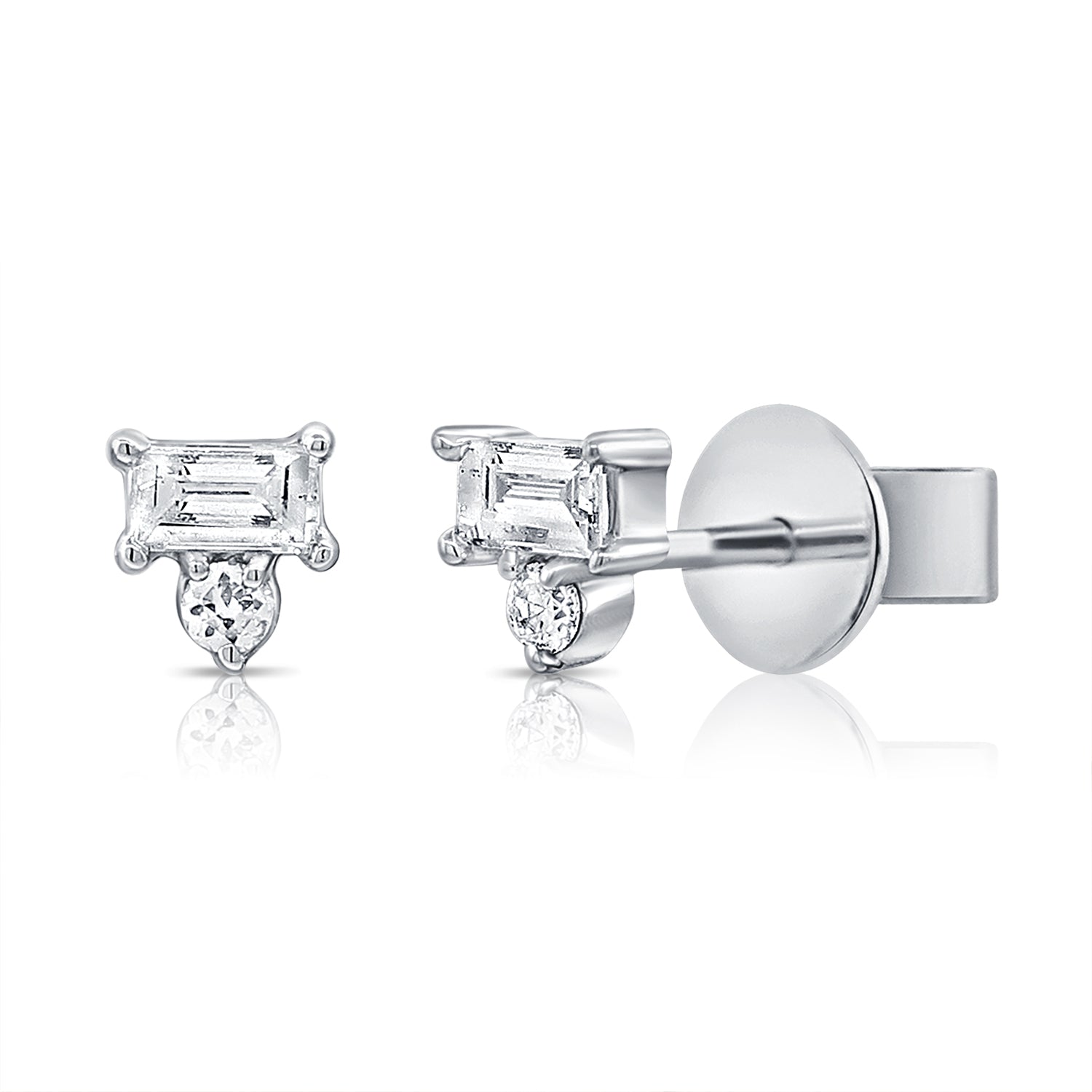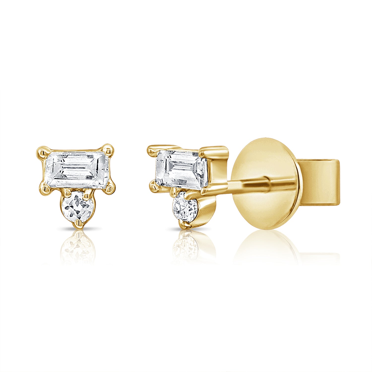A refined blend of classic and contemporary, these baguette and round diamond stud earrings exude effortless elegance. Featuring 0.19 carats of brilliant-cut round and baguette diamonds, these earrings capture the perfect balance of sparkle and sophistication. Crafted in 14K white, yellow, or rose gold, they offer a versatile and timeless addition to any jewelry collection.