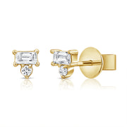 Elegant Baguette & Round Diamond Stud Earrings in 14K Gold