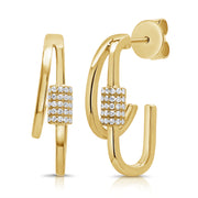 Modern Diamond Link Hoop Earrings in 14K Gold