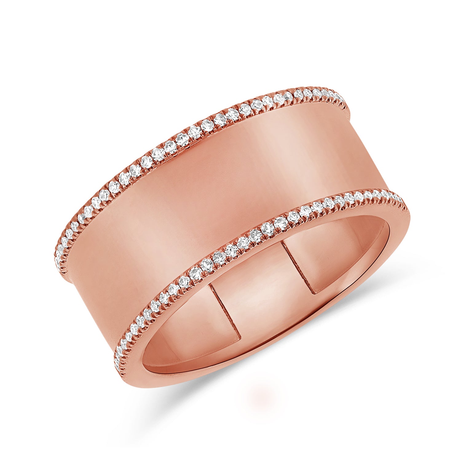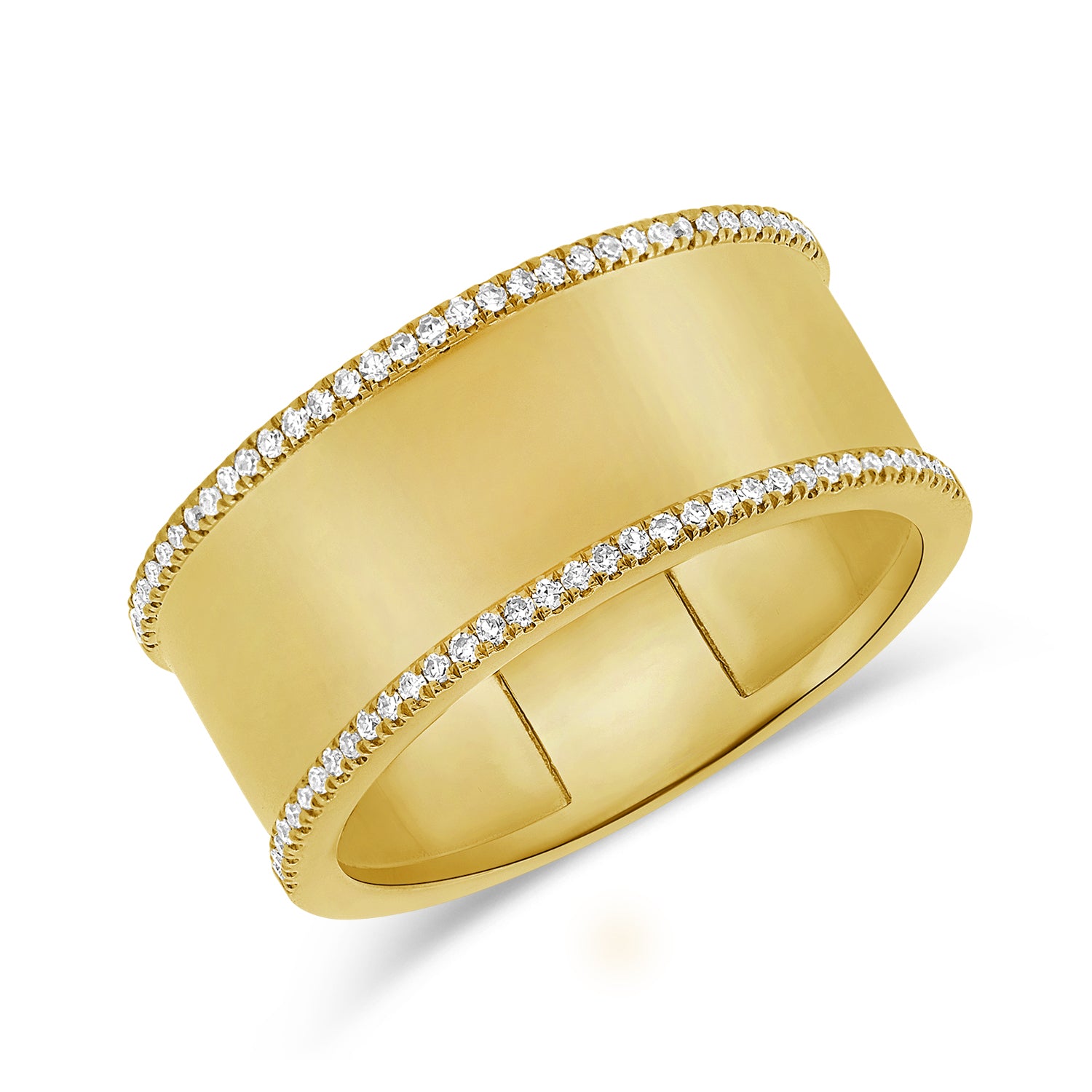 14K Gold 0.39ct Diamond Ribbed Band – Bold Sculpted Statement Ring