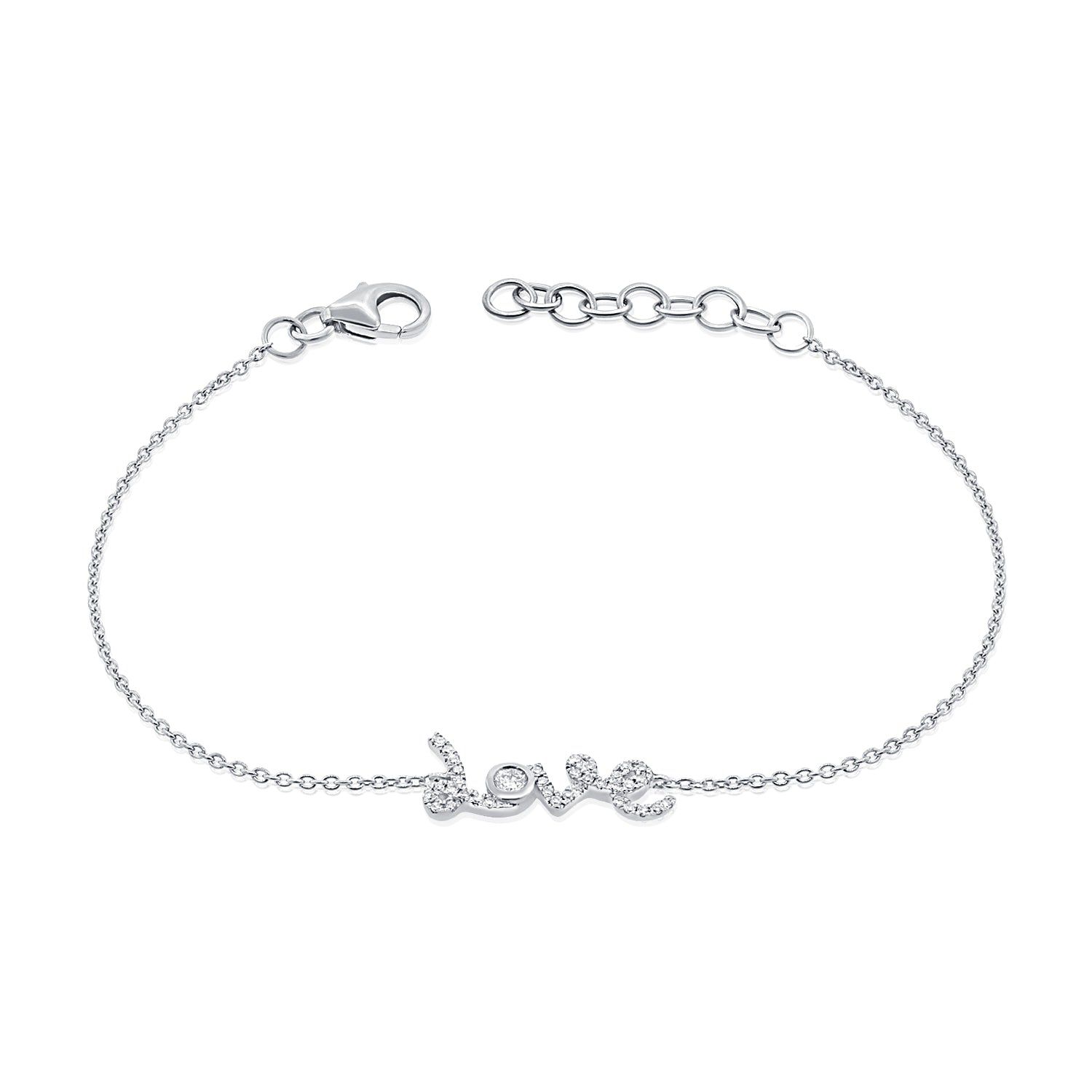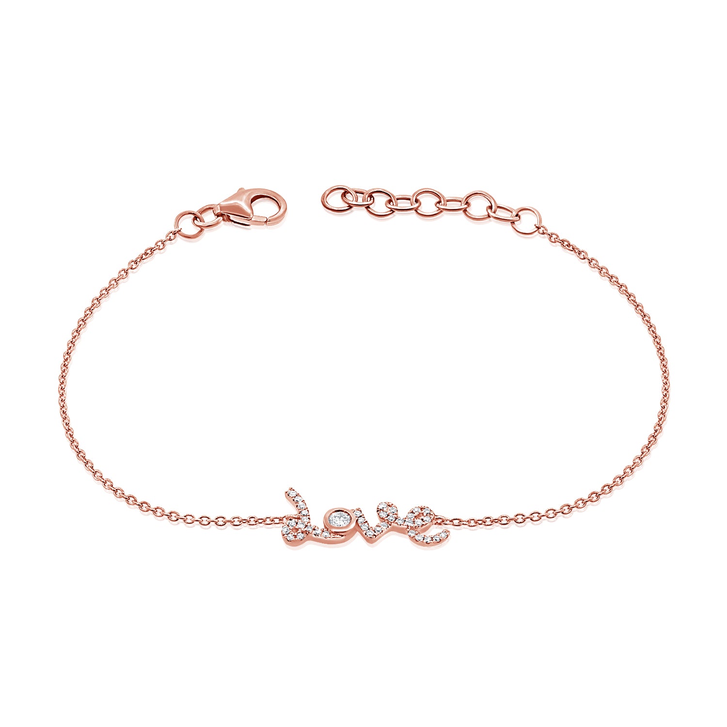 Celebrate love with our exquisite 14K Gold Diamond Love Chain Bracelet, a timeless and elegant piece that radiates romance and sophistication. Crafted in 14K white, yellow, or rose gold, this delicate bracelet features a pavé-set diamond "Love" script, sparkling with 0.21 carats of brilliant-cut diamonds.