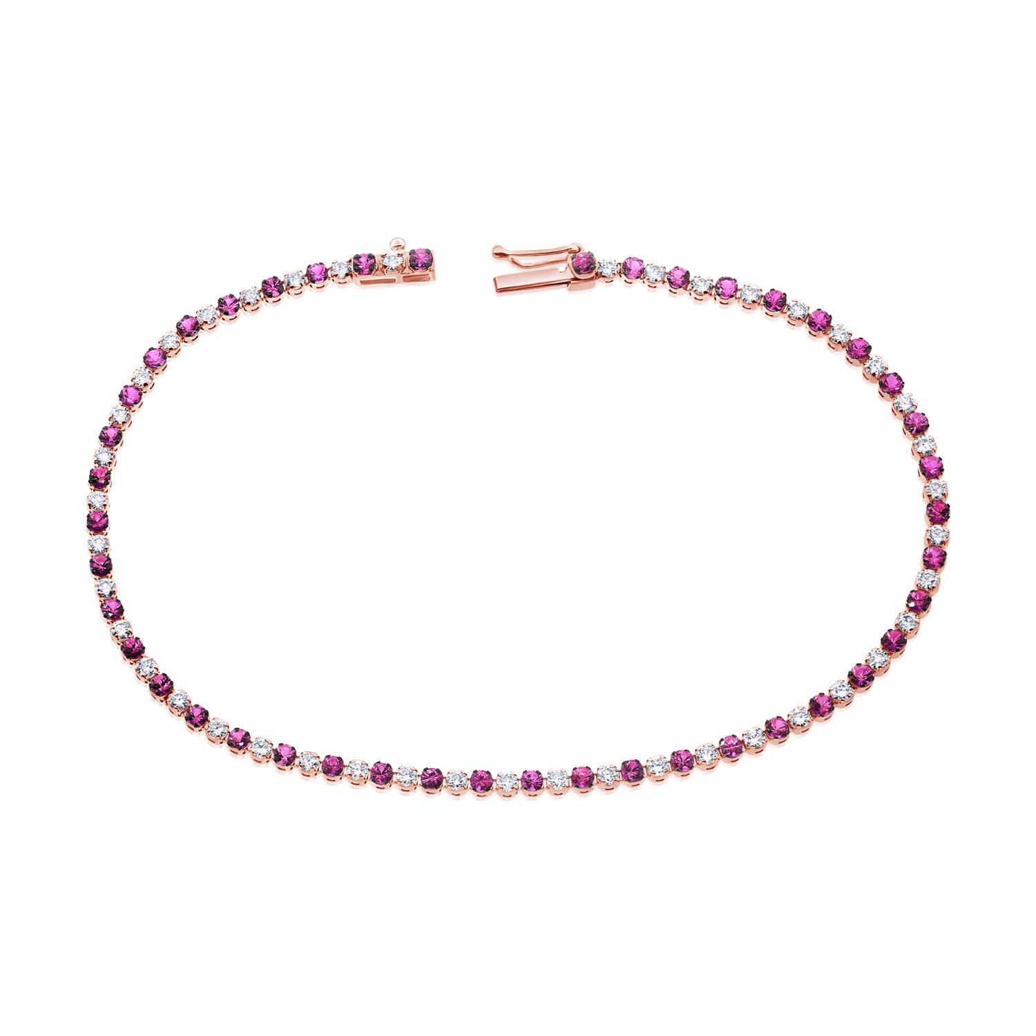 Elevate your jewelry collection with this exquisite Pink Sapphire and Diamond Tennis Bracelet, a timeless expression of elegance and sophistication. Crafted in 14K gold, this breathtaking piece showcases 2.30 carats of dazzling pink sapphires and brilliant diamonds, set in a seamless line of brilliance.