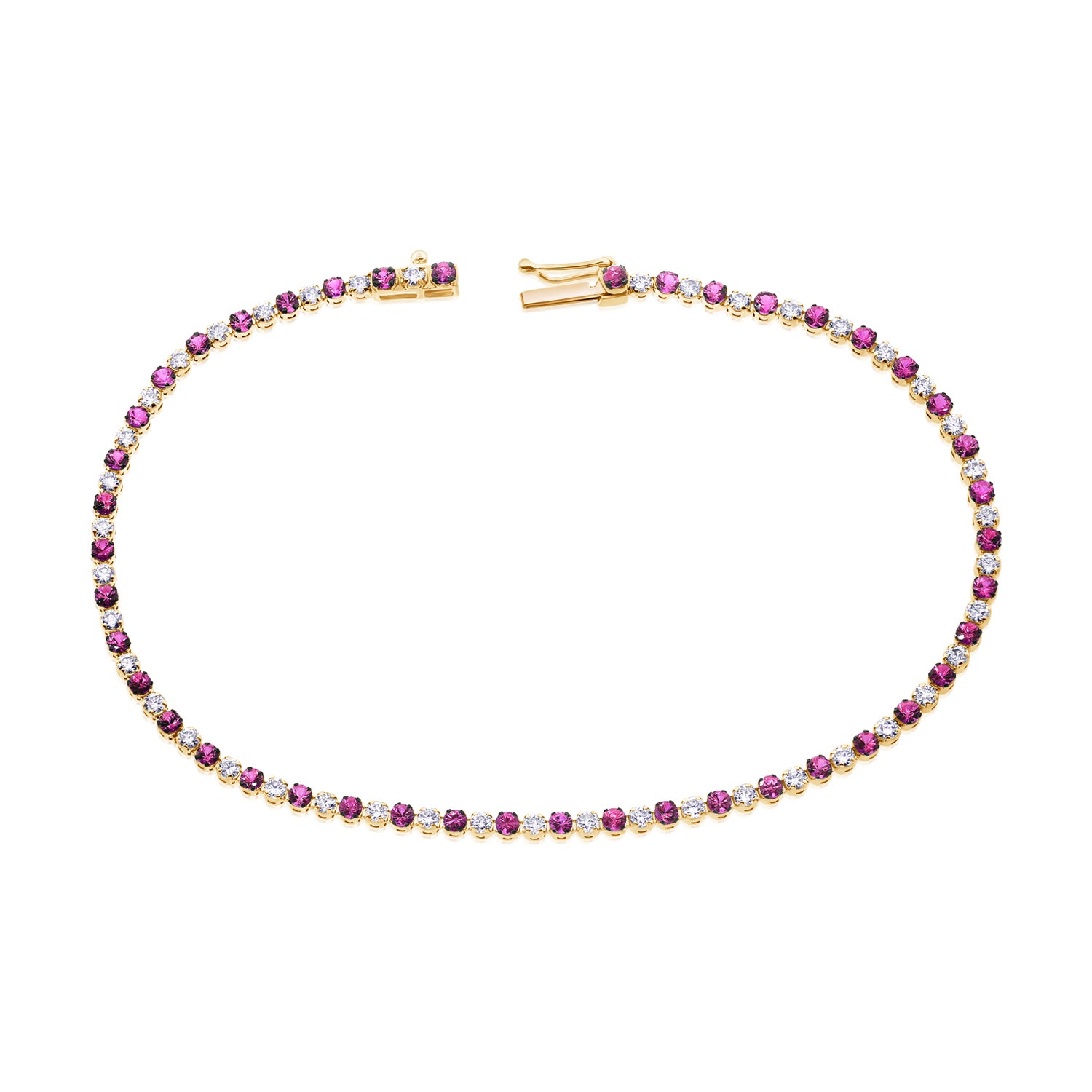 Vibrant 14K Gold Pink Sapphire and Diamond Tennis Bracelet