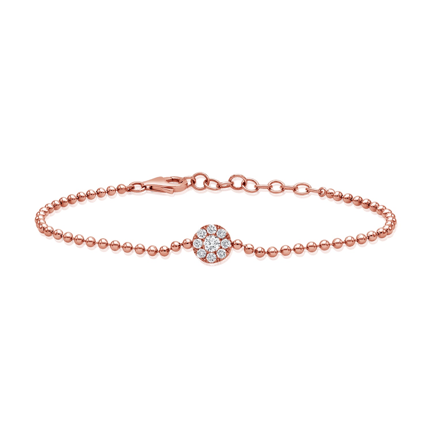 14K Gold Beaded Bracelet with Diamond Halo Emerald-Cut Accent