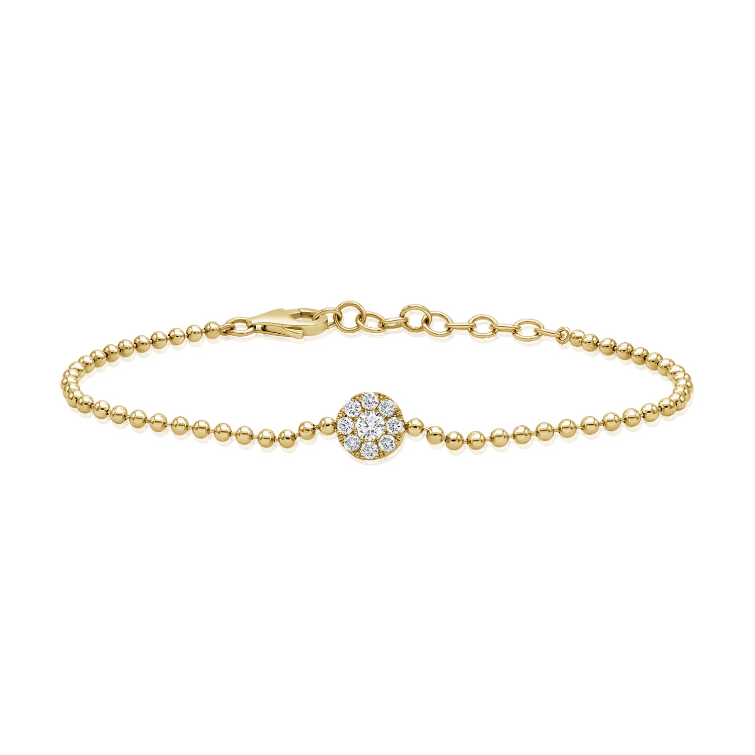 14K Gold Beaded Bracelet with Emerald-Cut Diamond Accent