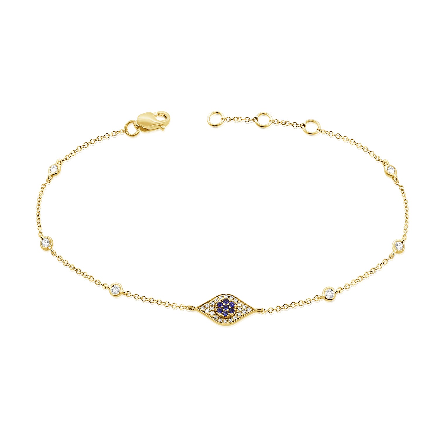 Sapphire & Diamonds Evil Eye Bracelet made in 14K Gold