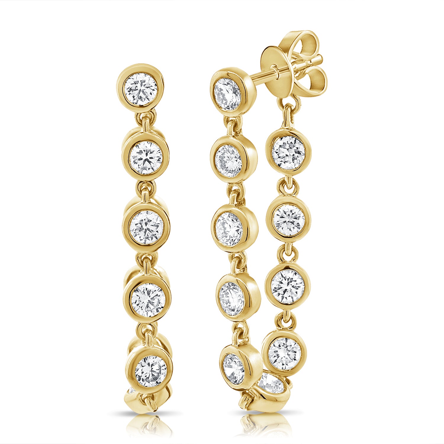 Stunning 14K Gold Bezel-Set Diamond Drop Earrings