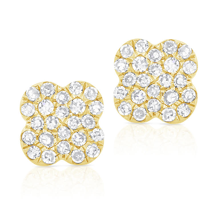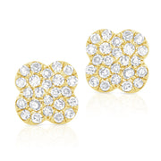 Diamond Pave Clover Stud Earrings in 14K Gold