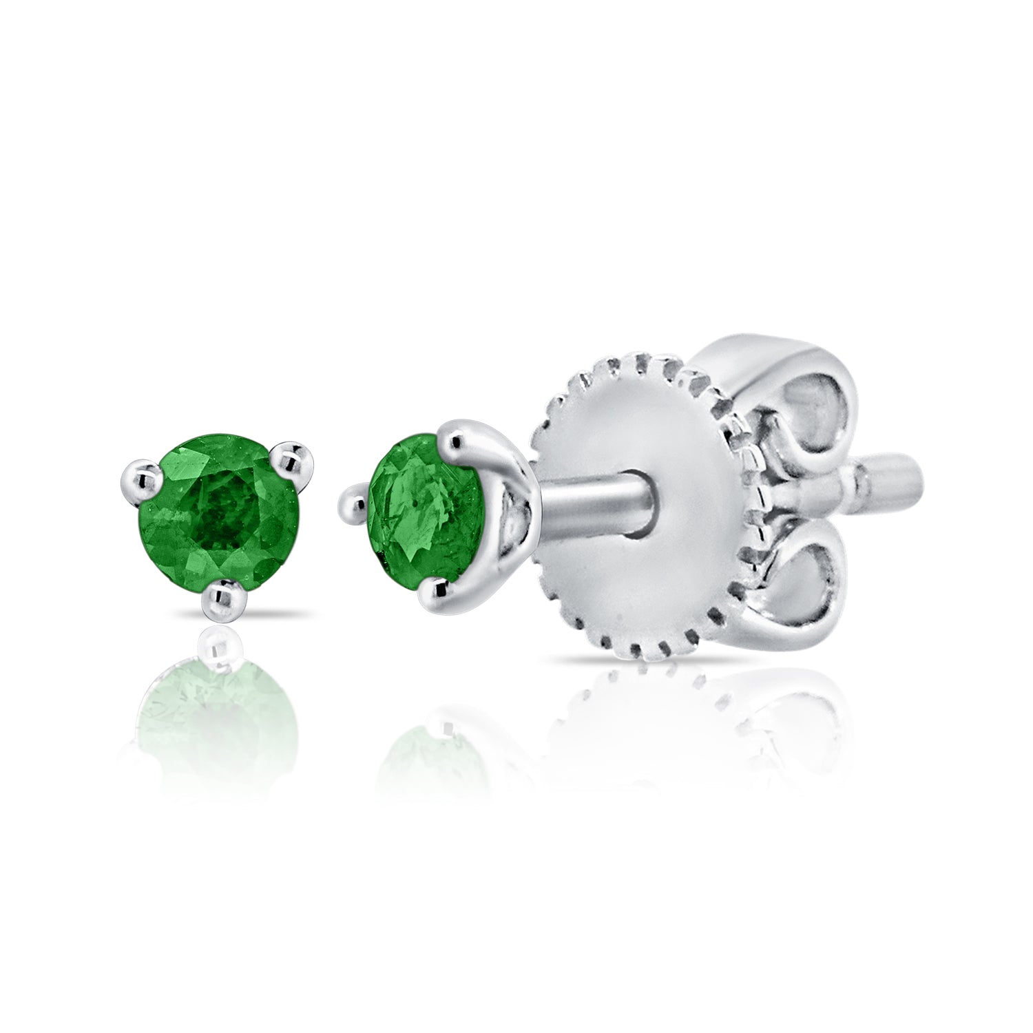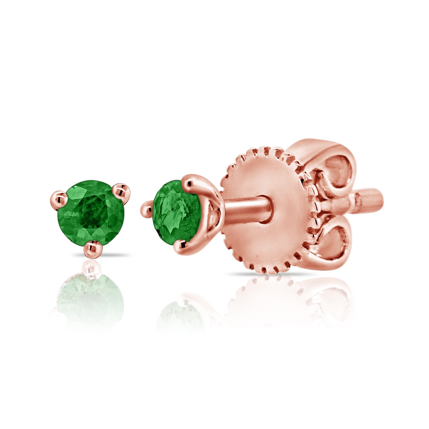 14K Gold Emerald Solitaire Stud Earrings ‚ 0.08 Carat Classic Round Cut