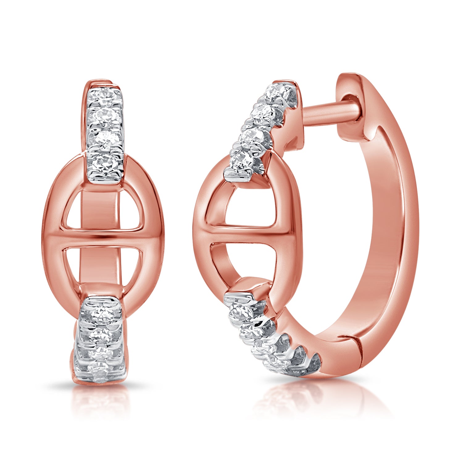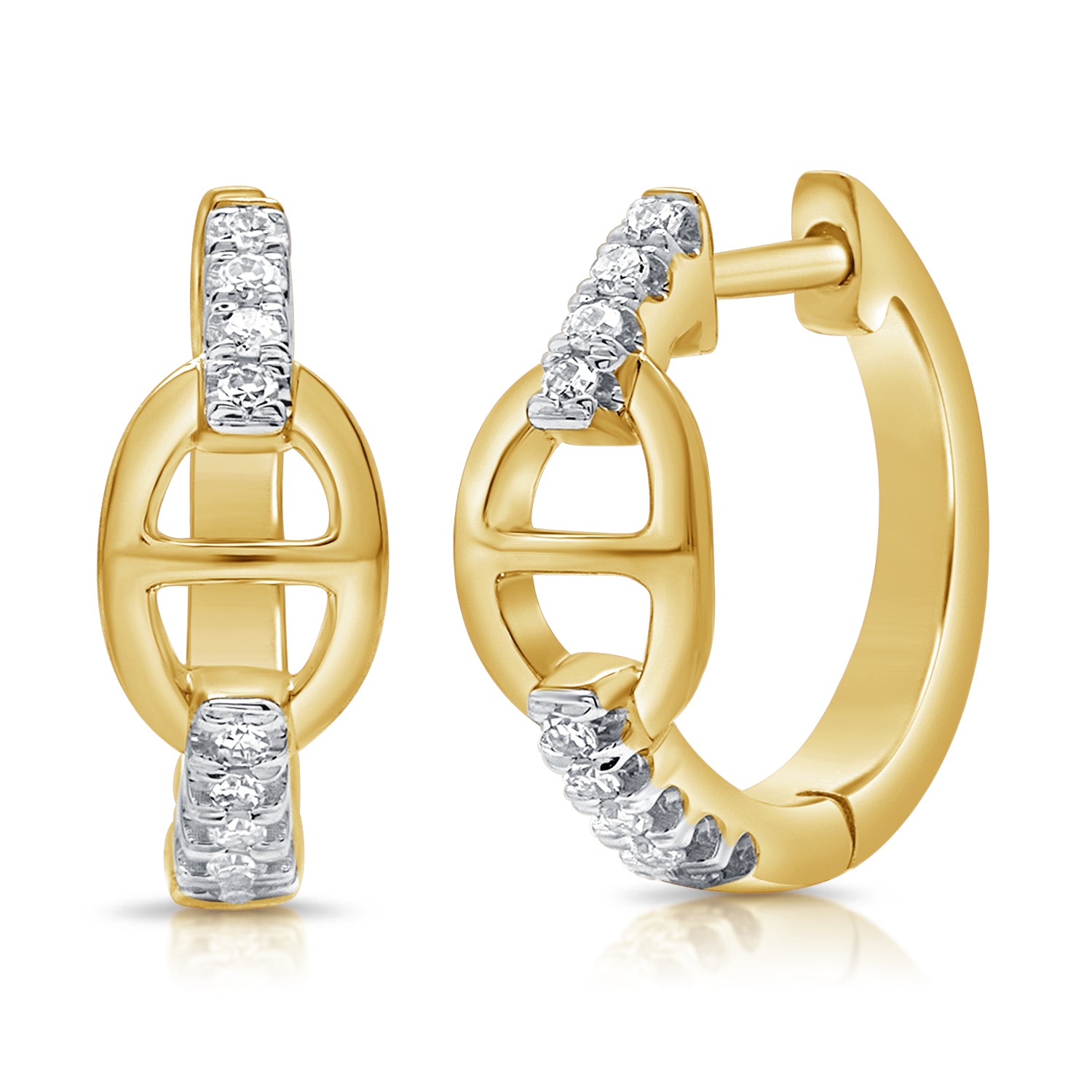 Diamond Link Huggie Earrings made in 14K Gold