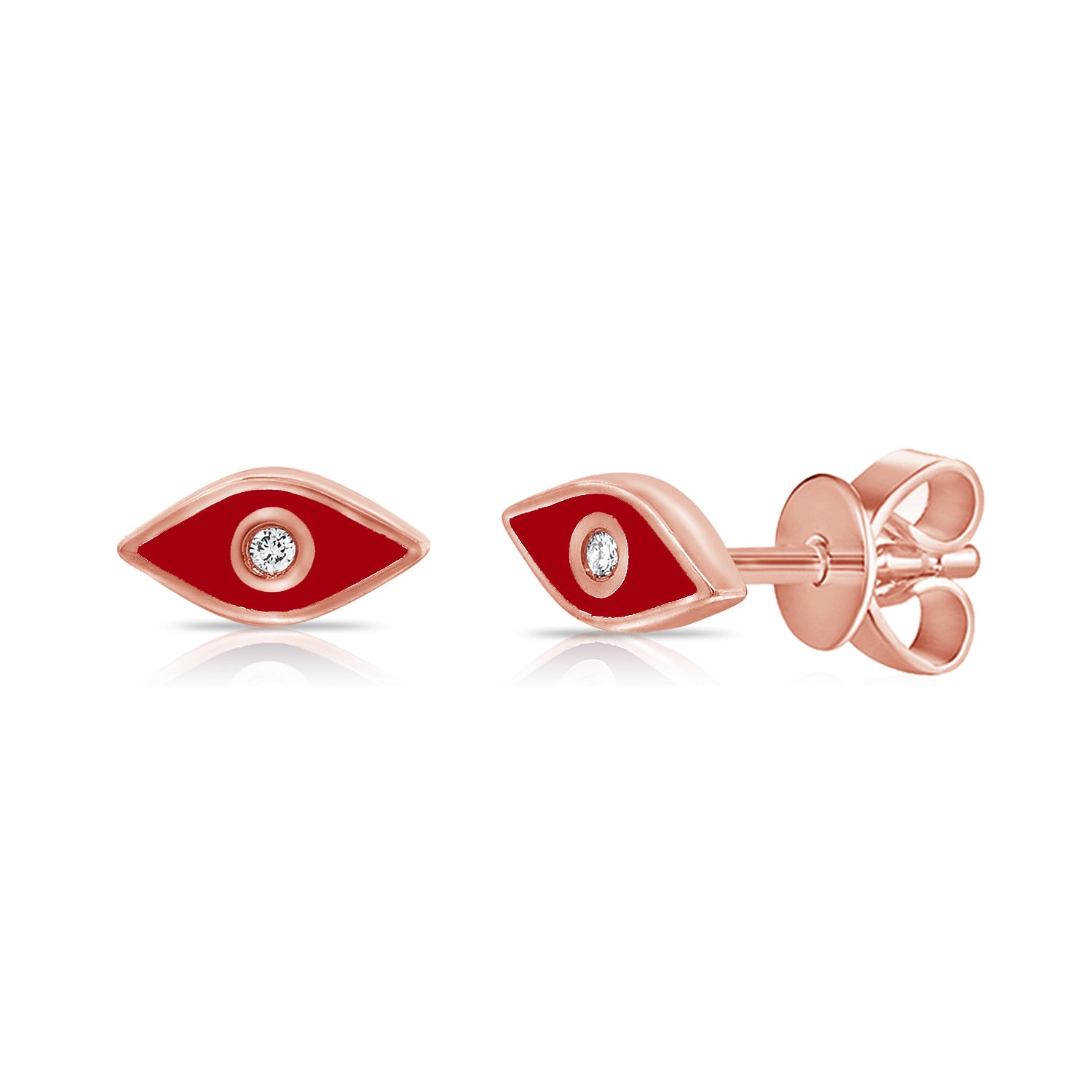 Embrace protection and style with our enchanting Red Evil Eye & Hamsa Diamond Stud Earrings, adorned with delicate 0.01 carat diamonds. These captivating earrings feature a fusion of two powerful symbols • the Evil Eye and the Hamsa hand • crafted to ward off negativity and bring blessings and prosperity to the wearer.