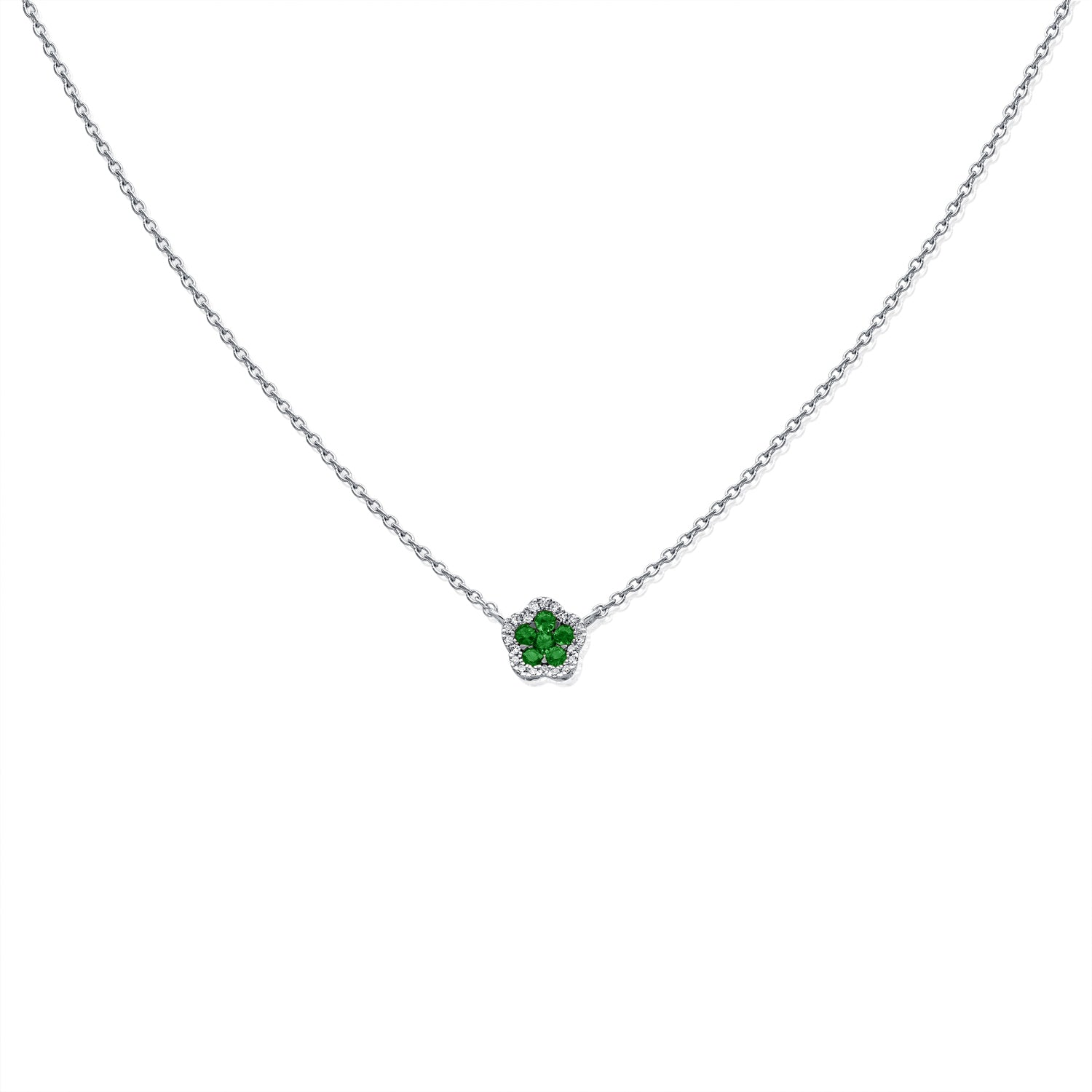 0.65 Carat Diamond and Emerald Flower Necklace in 14K White, Yellow, or Rose Gold