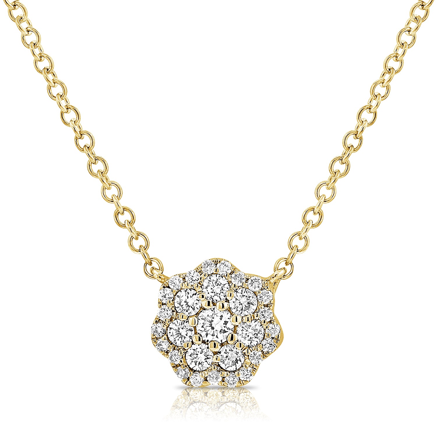 14K Gold Diamond Floral Cluster Pendant Necklace | 0.20ct