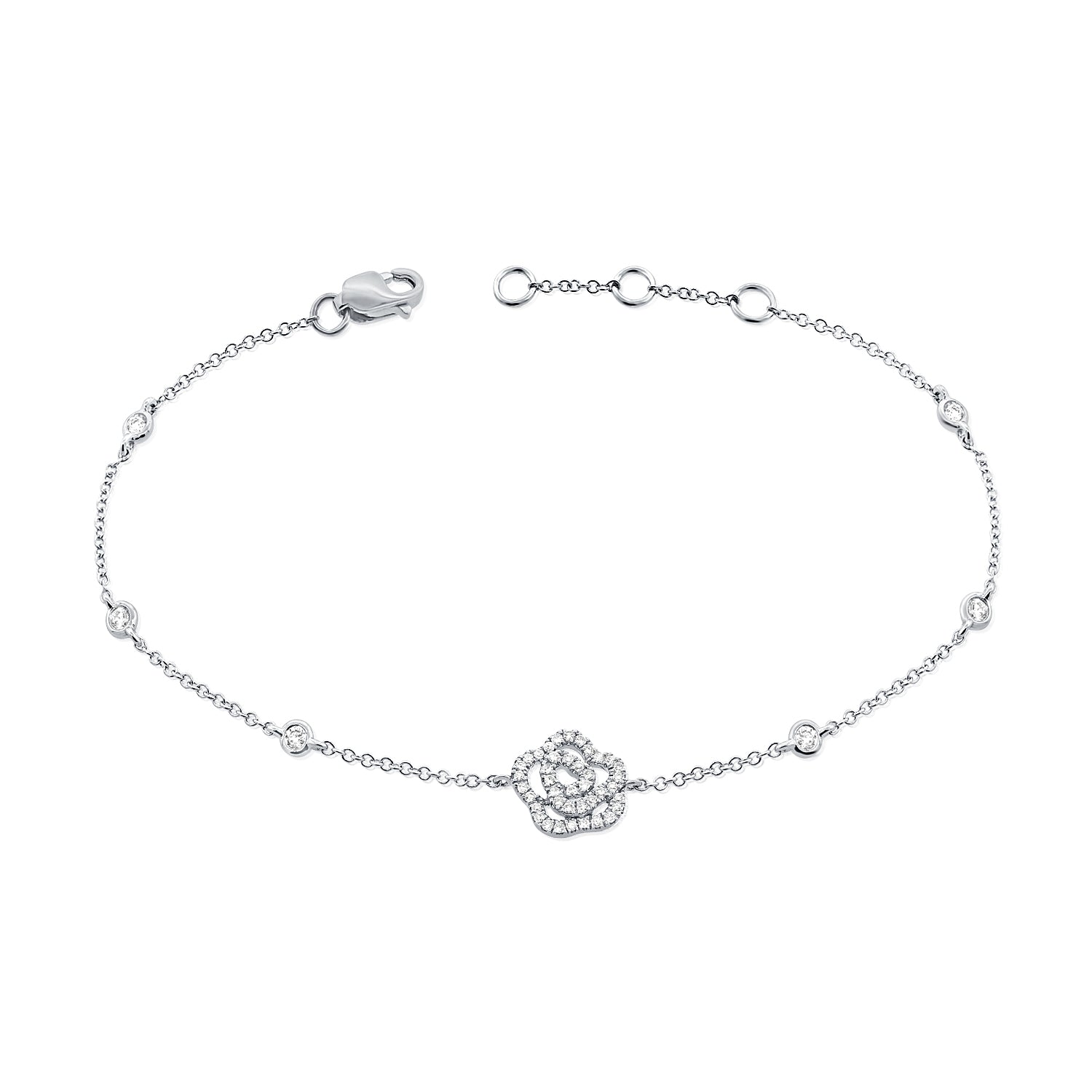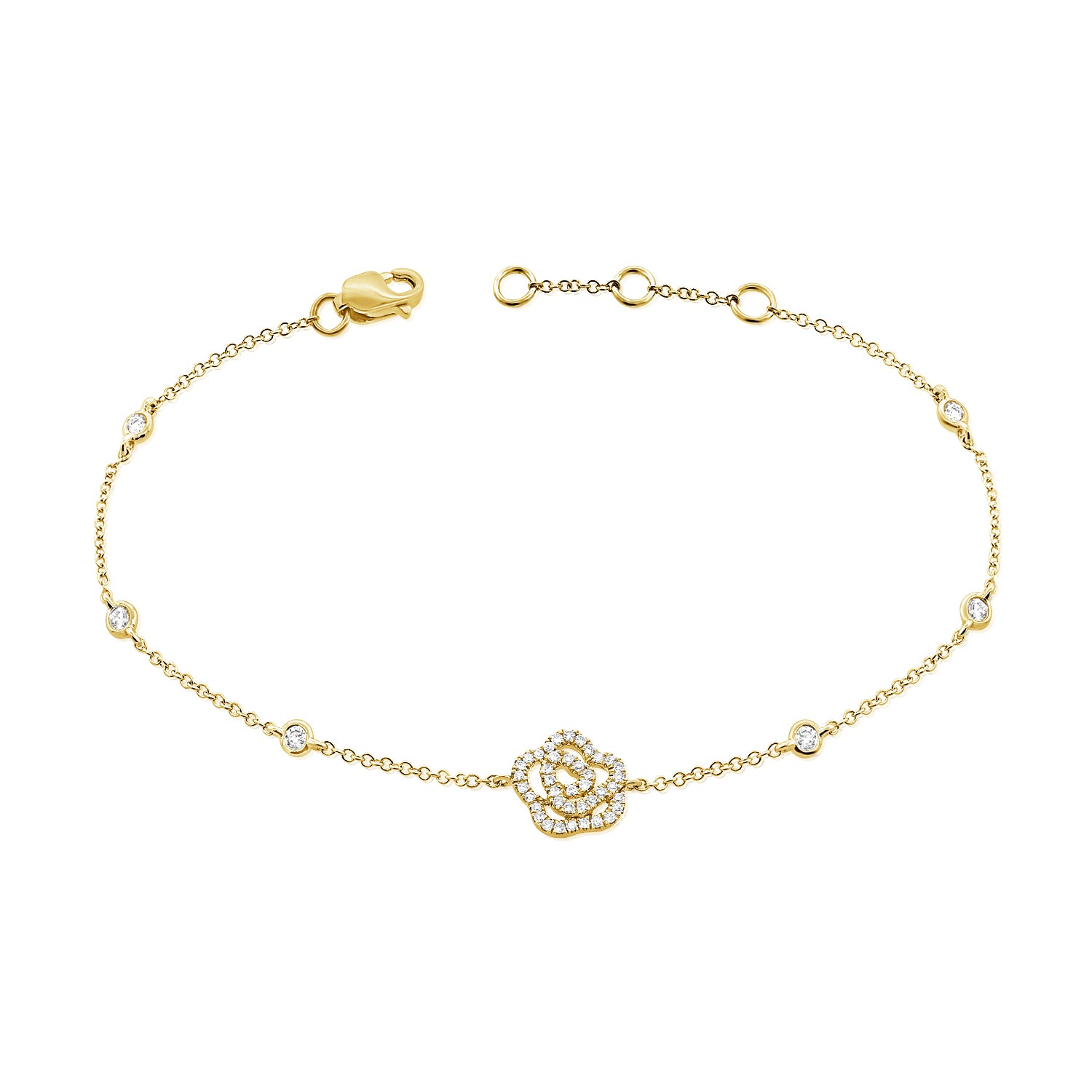 Elevate your jewelry collection with this exquisite 14K gold diamond flower bracelet, a delicate yet dazzling piece designed to captivate. Featuring a beautifully crafted 8.8mm diamond-encrusted flower at its center, this bracelet sparkles with 0.24 carats of round-cut diamonds. The dainty gold chain is accented with bezel-set diamonds, adding an extra touch of elegance and brilliance. Perfect for everyday luxury or special occasions, this bracelet offers timeless sophistication in 14K yellow, rose, or white gold.