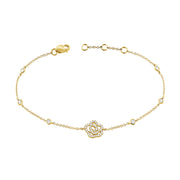 14K Gold Diamond Flower Bracelet with Bezel-Set Accents