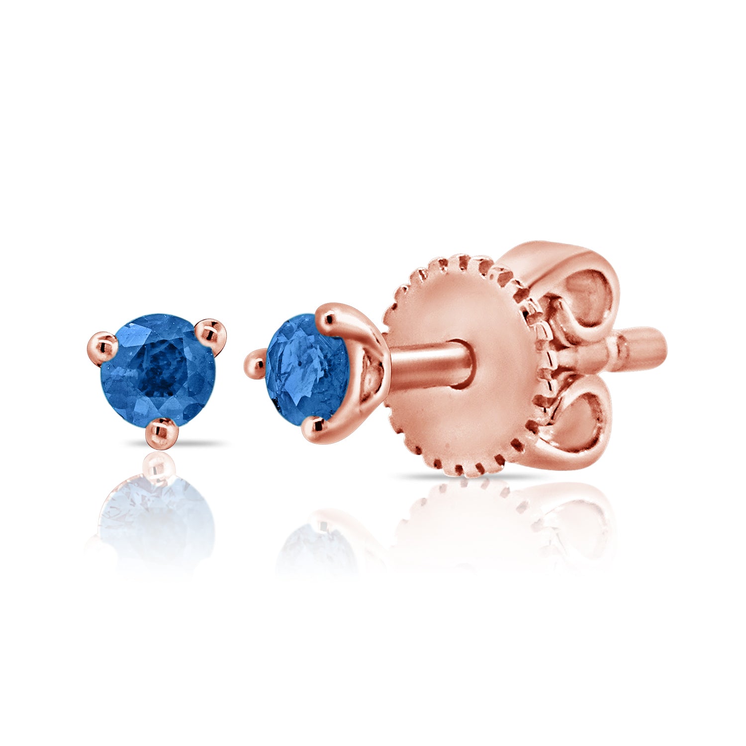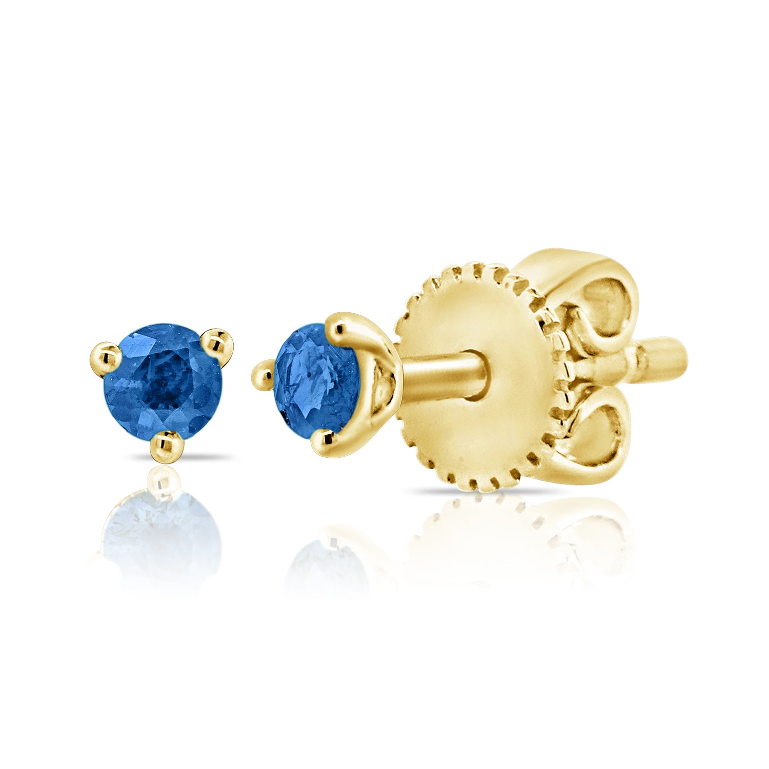 14K Gold Round Solitaire Sapphire Stud Earrings | 0.12ct Classic Sapphire Studs