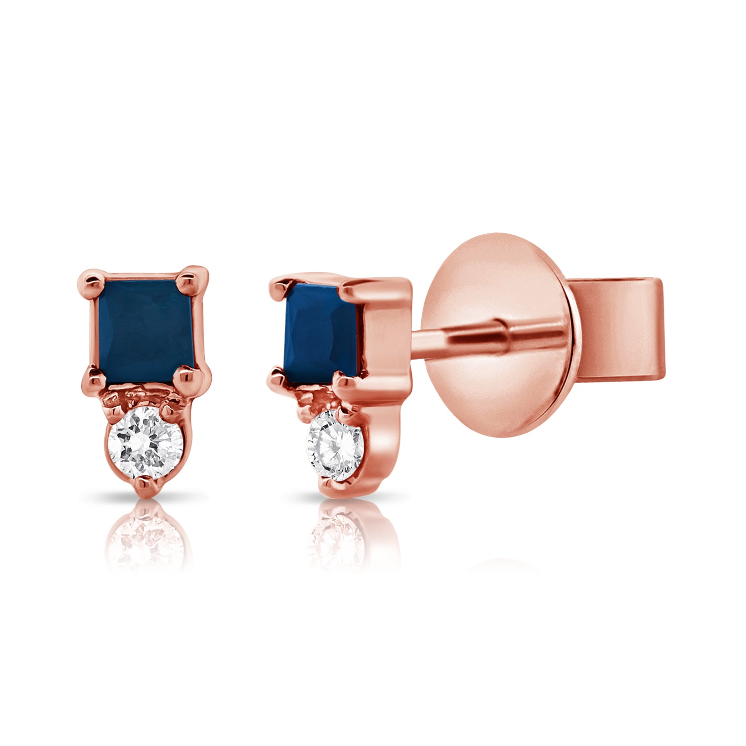 14K Gold Sapphire and Diamond Stud Earrings | 0.08 Carat