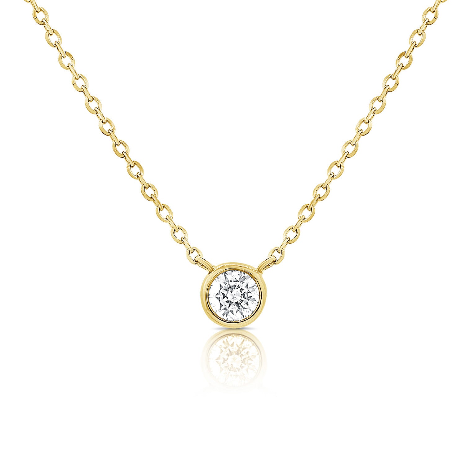 Add a touch of sophistication to your jewelry collection with this elegant 14K Gold Diamond Necklace. Featuring a delicate chain, this necklace showcases a single solitaire diamond totaling 0.11 carats, set in a classic 14K gold pendant. The diamond's brilliant sparkle is beautifully highlighted against the warm gold, creating a timeless and refined look. Perfect for everyday wear or special occasions, this necklace offers a subtle yet striking way to enhance any outfit with its understated luxury.