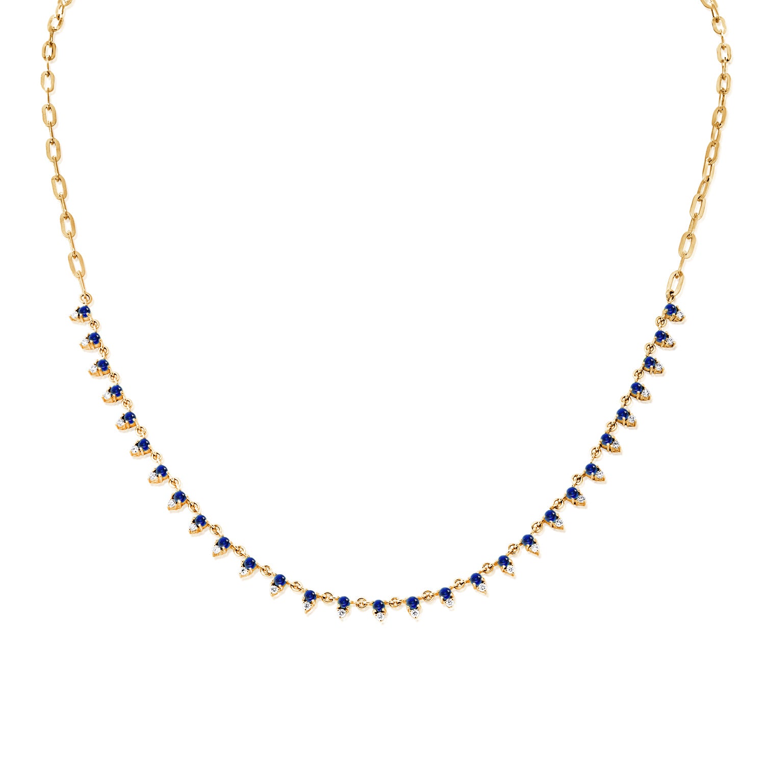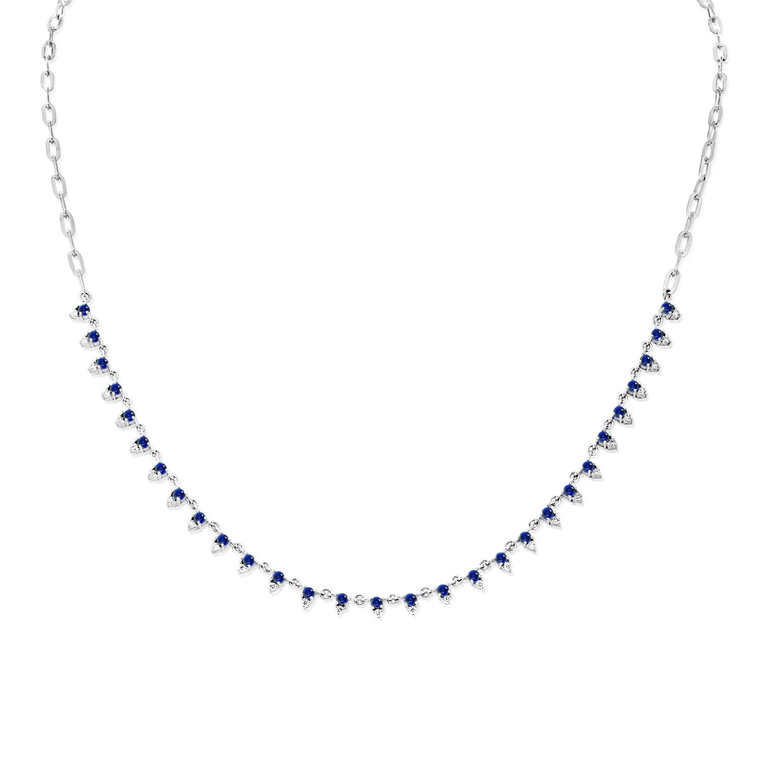 Luxurious Paperclip Station Necklace with 1.47 Carats of Sapphires and Diamonds