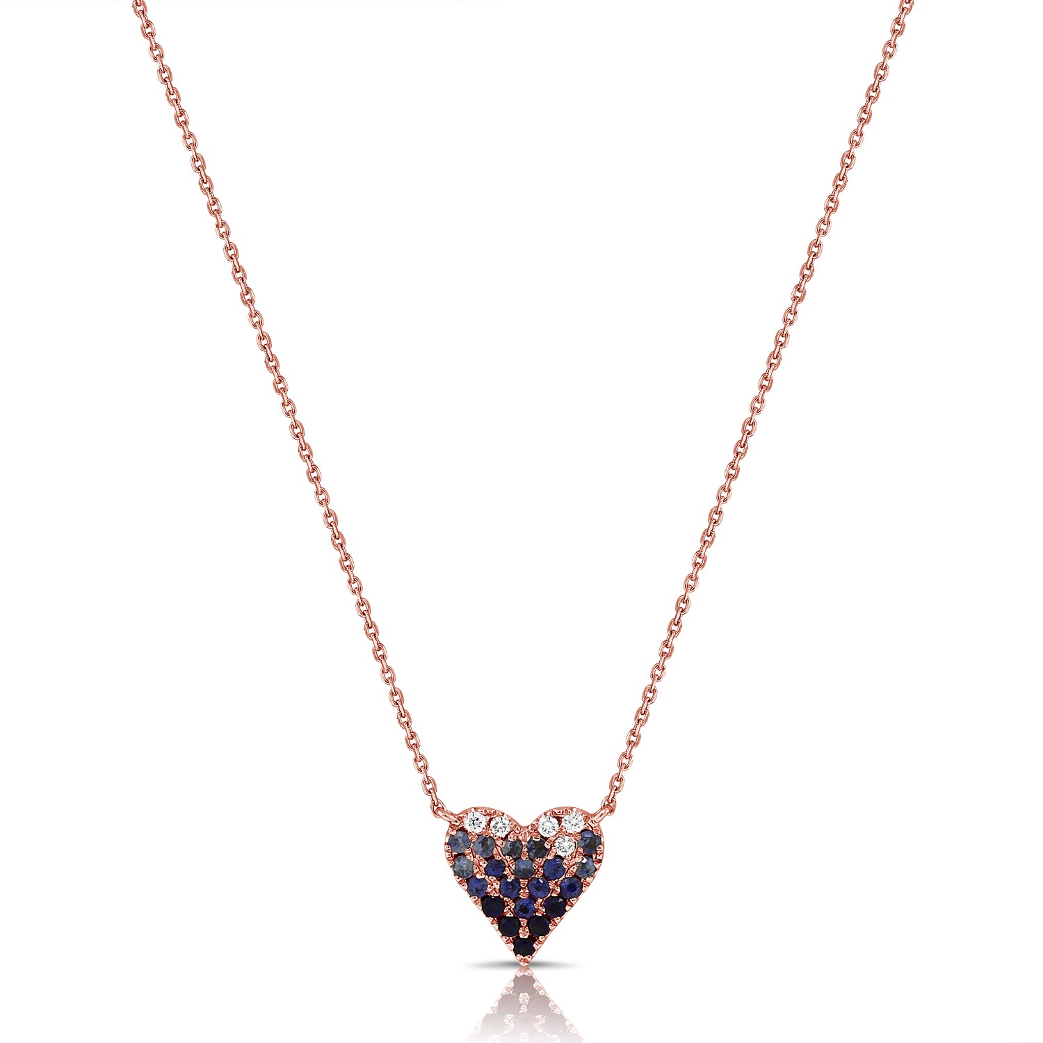 This 14K Gold Blue Sapphire and Diamond Heart Necklace is a sophisticated blend of elegance and charm. Featuring 0.37 carats of richly hued blue sapphires, accented by shimmering diamonds, this heart-shaped pendant offers a striking contrast and luxurious appeal. The intricate setting showcases the beauty of each stone, creating a captivating piece that adds a touch of refined glamour to any outfit. Available in 14K white, yellow, or rose gold, this necklace is designed to complement various styles and occasions. A meaningful gift or a special addition to your collection, it's a timeless piece with lasting allure.