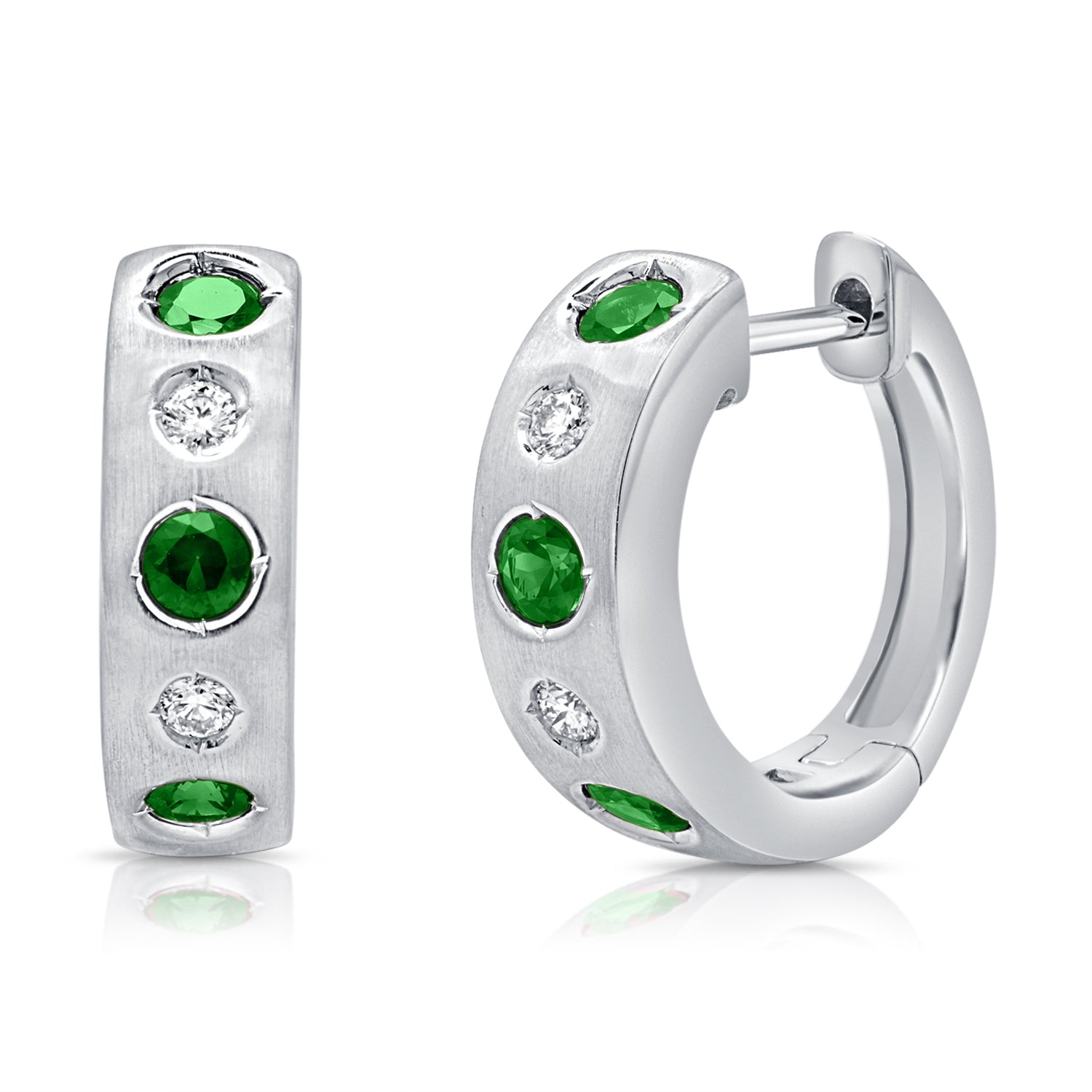 Add a sophisticated pop of color with these 14K Gold Emerald and Diamond Huggie Earrings. Featuring 0.65 carats of alternating emeralds and diamonds, the 4mm wide, 15mm high hoops offer bold elegance and everyday comfort. Available in rose, white, or yellow gold- a timeless blend of luxury and versatility.