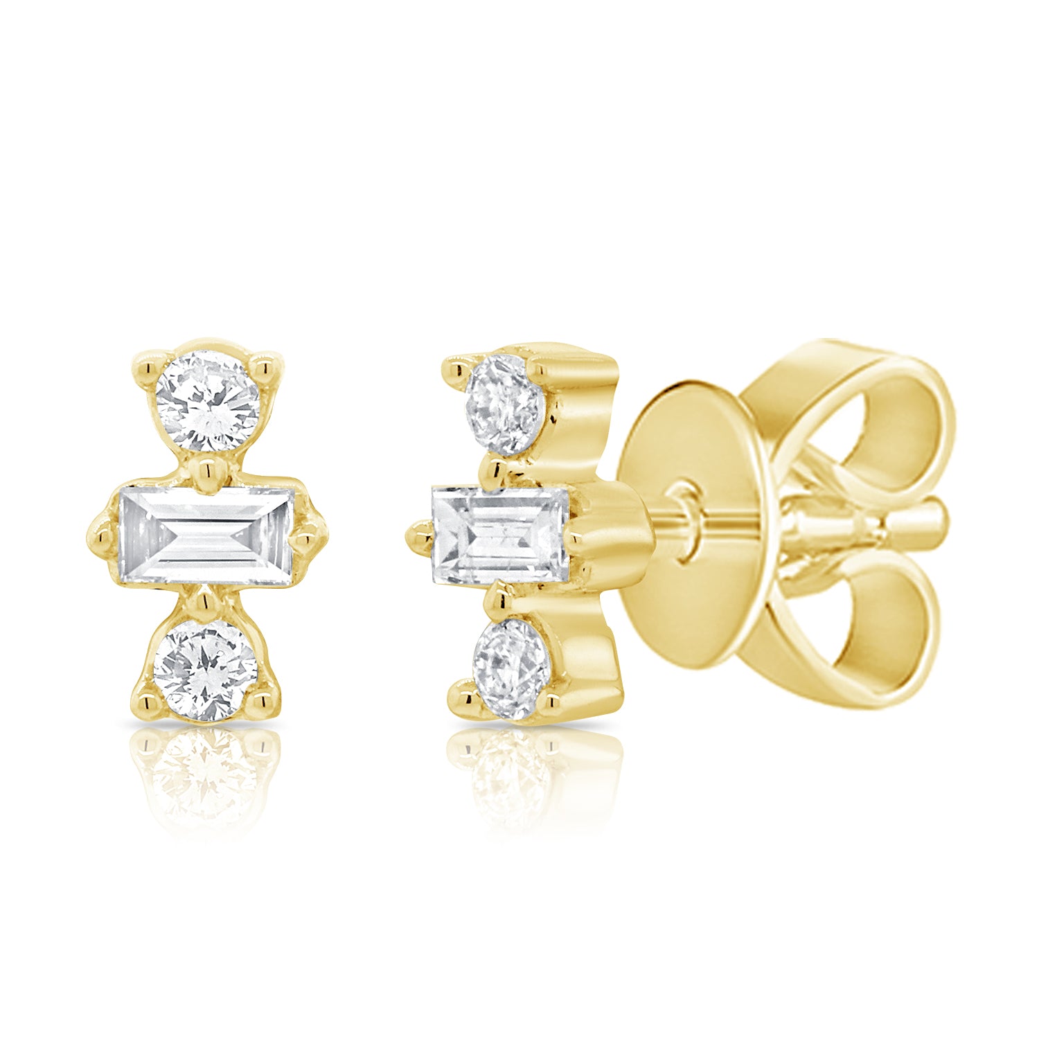 14K Gold Mixed-Cut Diamond & Baguette Stud Earrings | 0.14 Carat