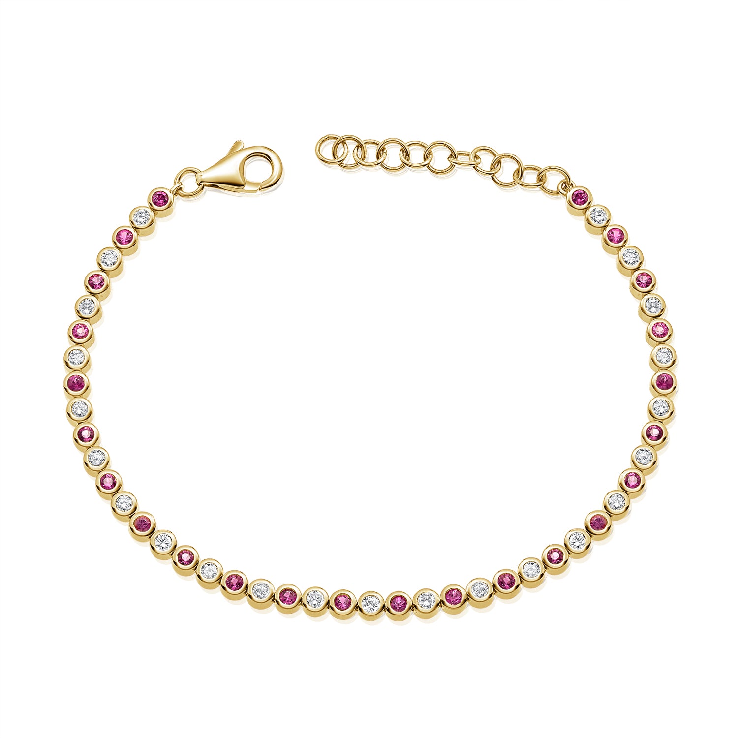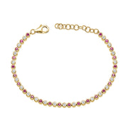 Elegant 14K Gold Tennis Bracelet with Pink Sapphires and Diamonds