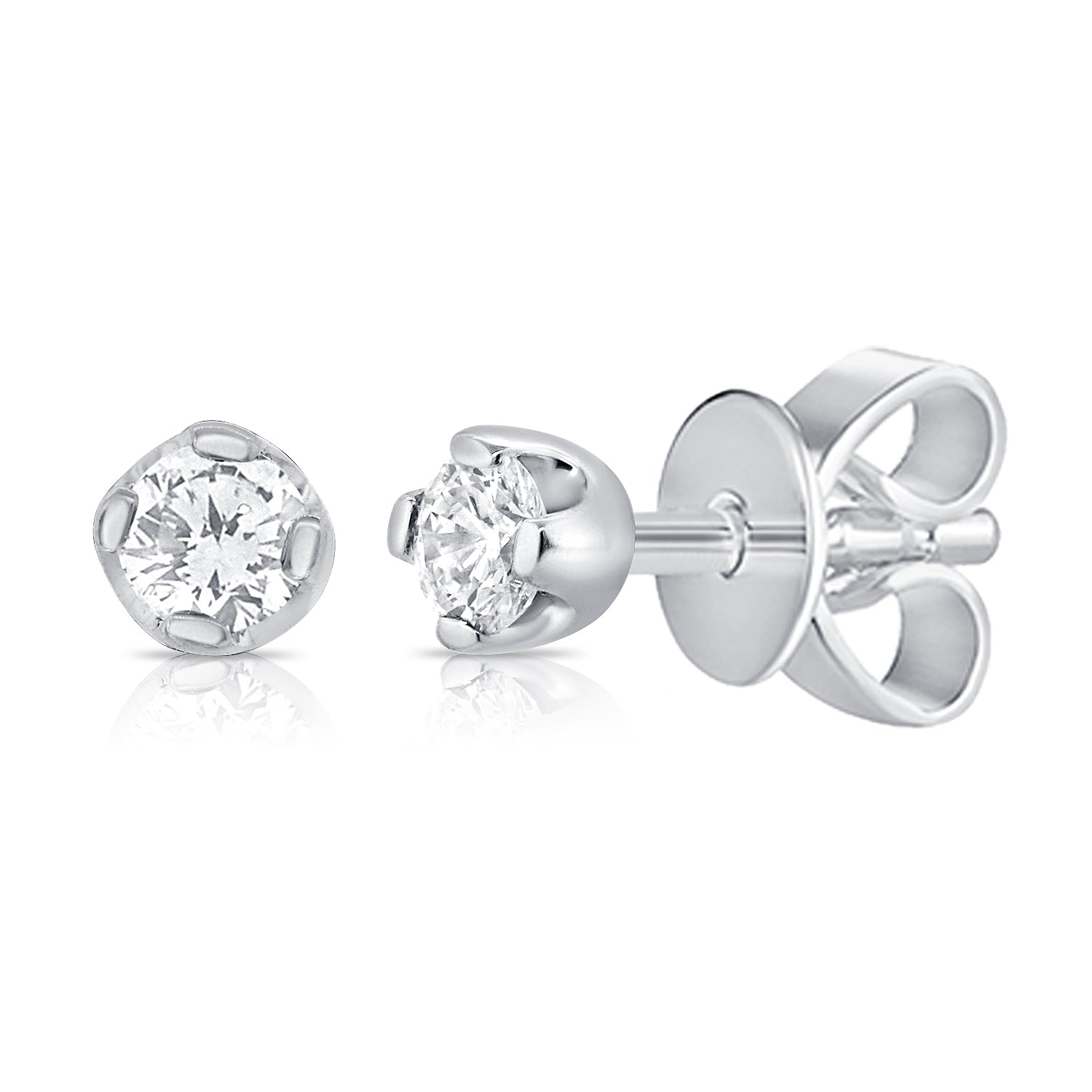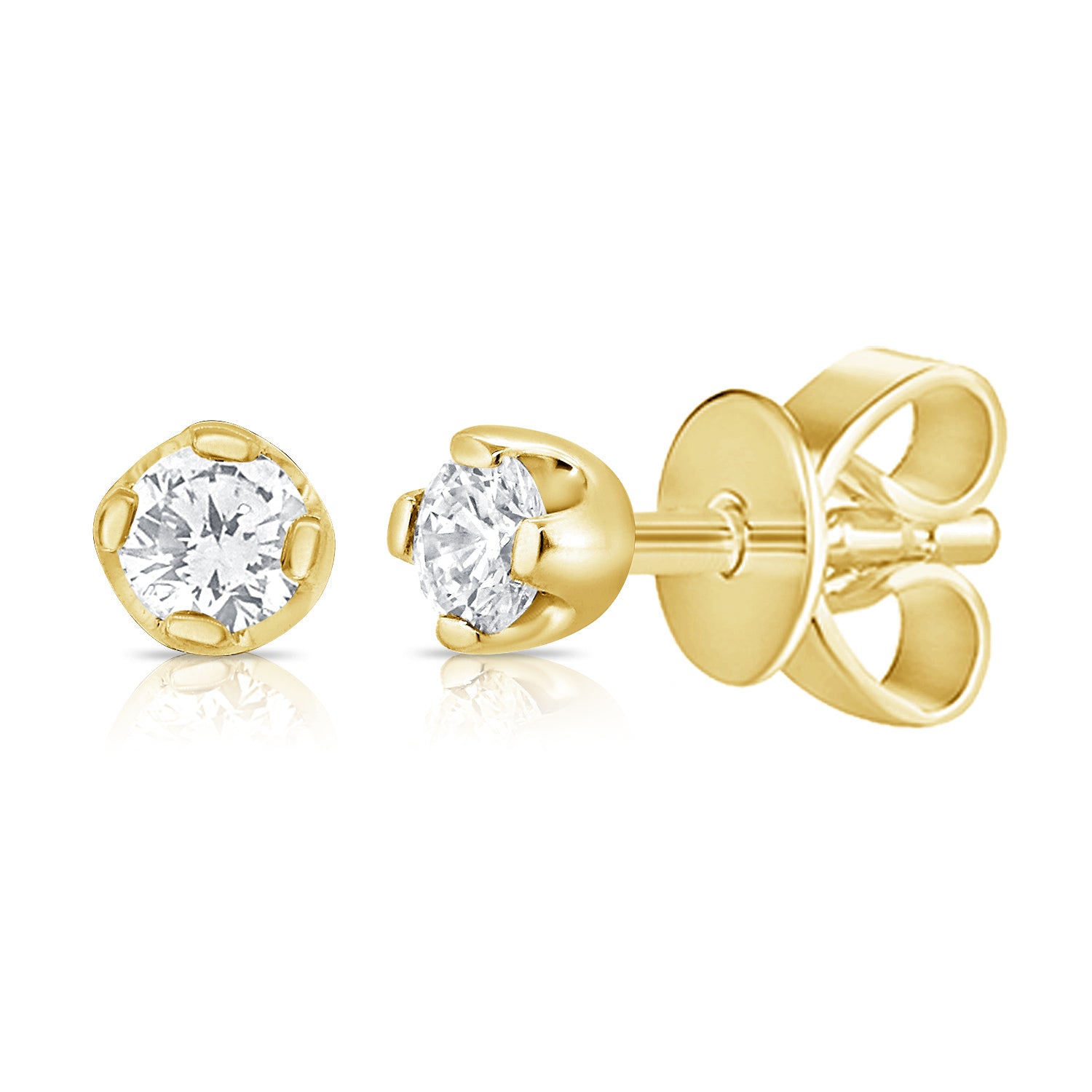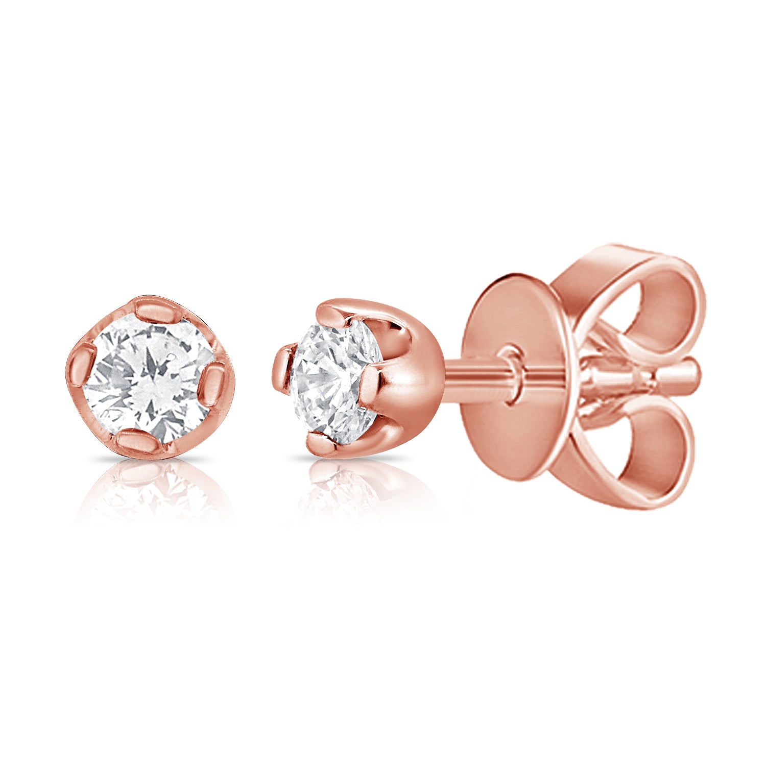 Elevate your elegance with our Diamond Solitaire Stud Earrings, featuring 0.13 carats of brilliant diamonds. Each earring is designed to showcase a single, sparkling diamond, set in your choice of 14K white, yellow, or rose gold for a timeless and versatile look. These classic studs are perfect for adding a touch of understated luxury to your everyday wear or enhancing your ensemble for special occasions. Their simple yet refined design makes them a staple piece in any jewelry collection, offering a subtle shimmer that's effortlessly chic.