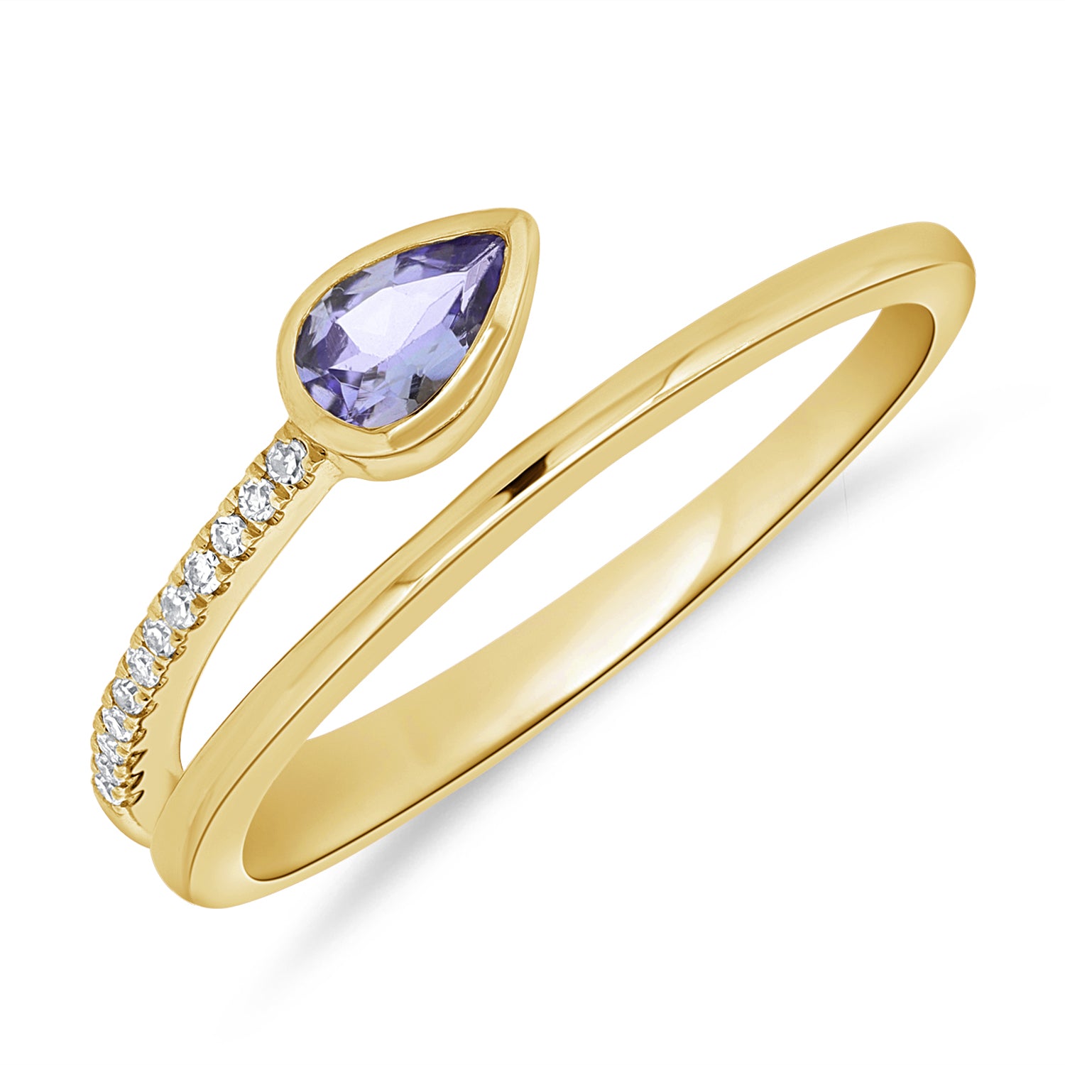 14K Gold Pear-Shaped Tanzanite and Diamond Ring