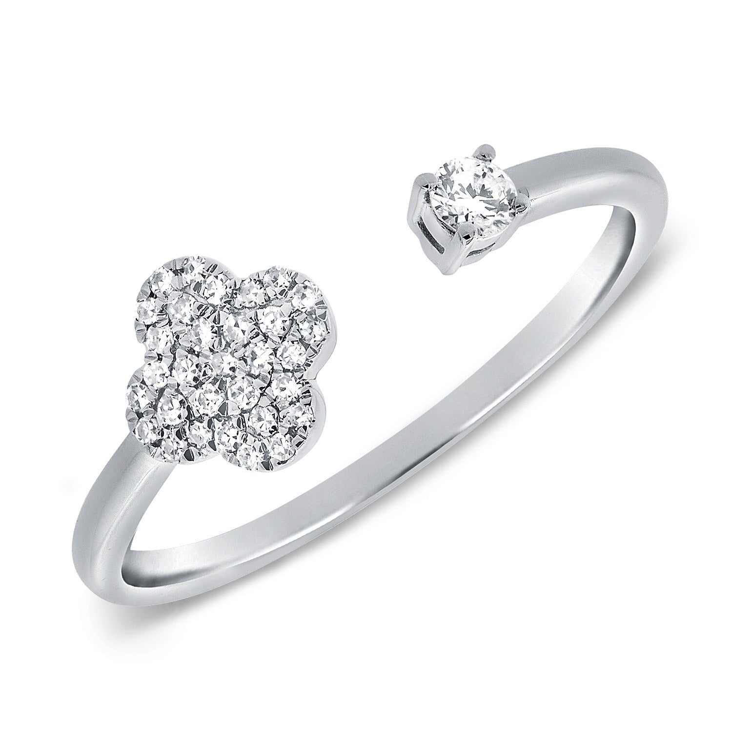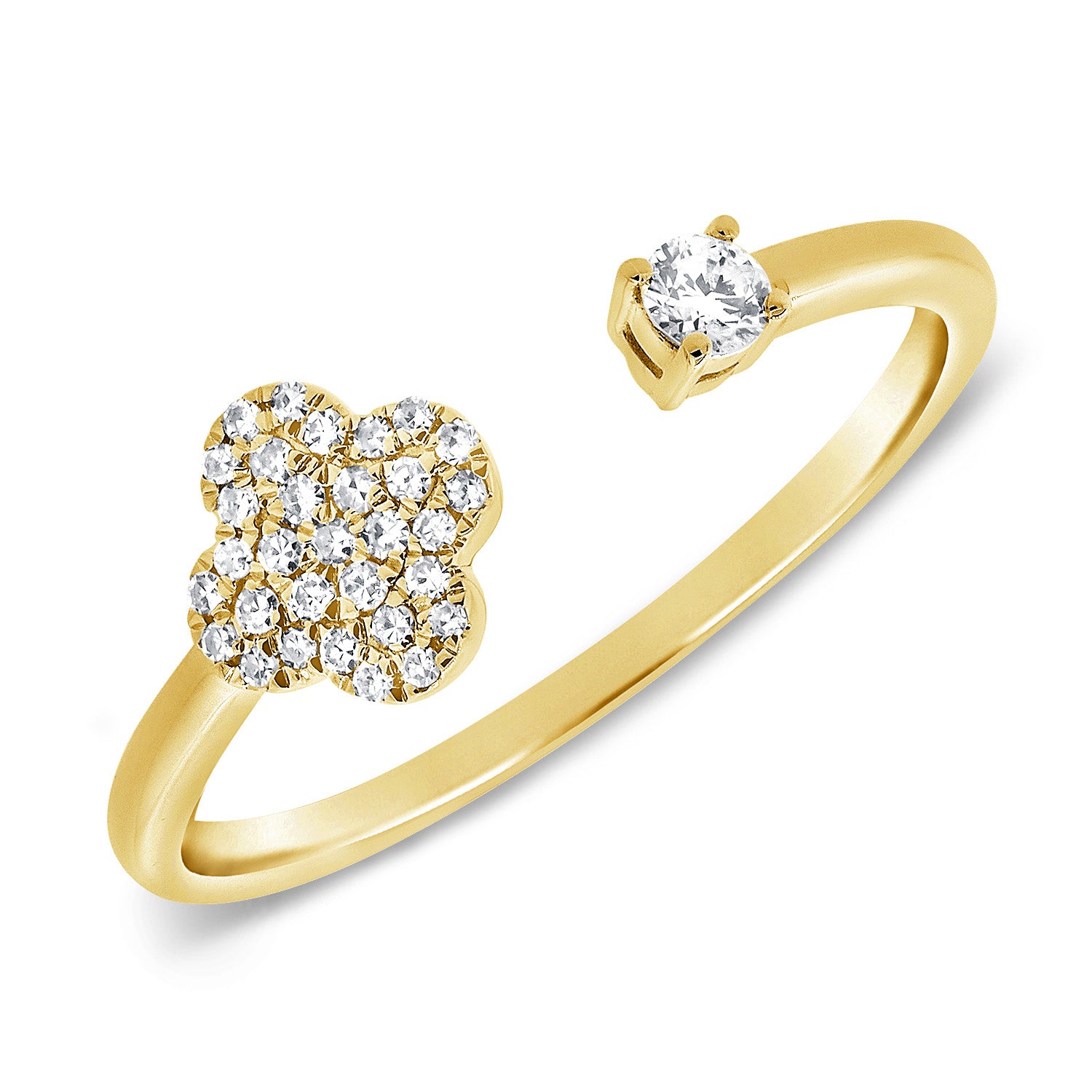 14K Gold Open Floral Diamond Cluster Ring with Solitaire Accent