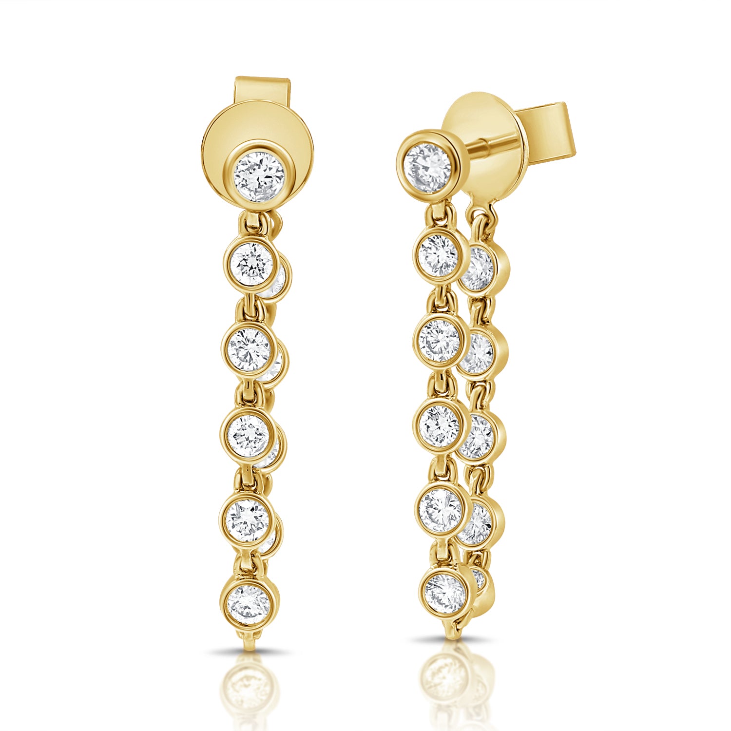 14K Gold Diamond Bezel & Channel Set Chain Stud Earrings | 0.62ct Drop Studs