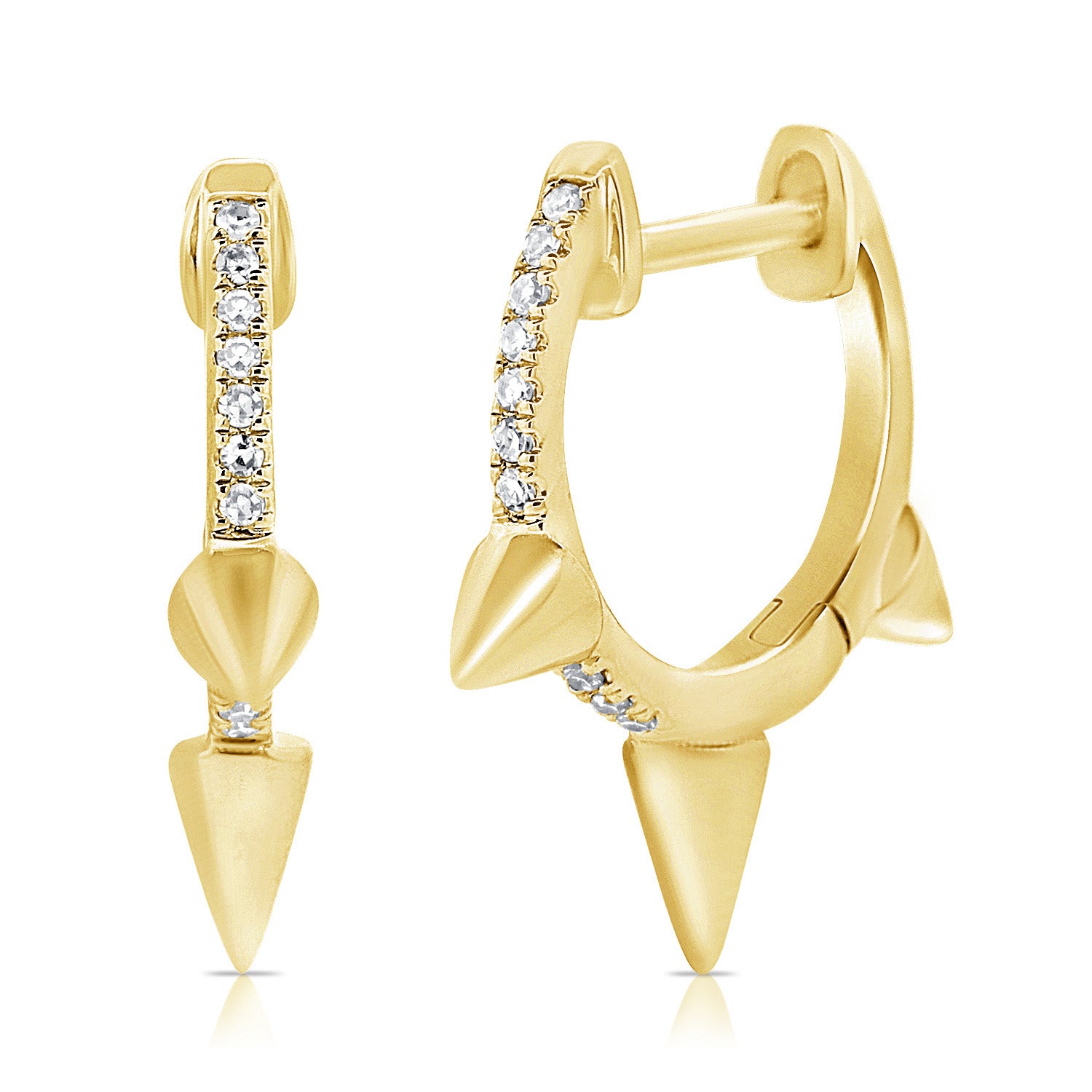 14K Gold Diamond Spike Huggie Earrings - 0.05 Carat