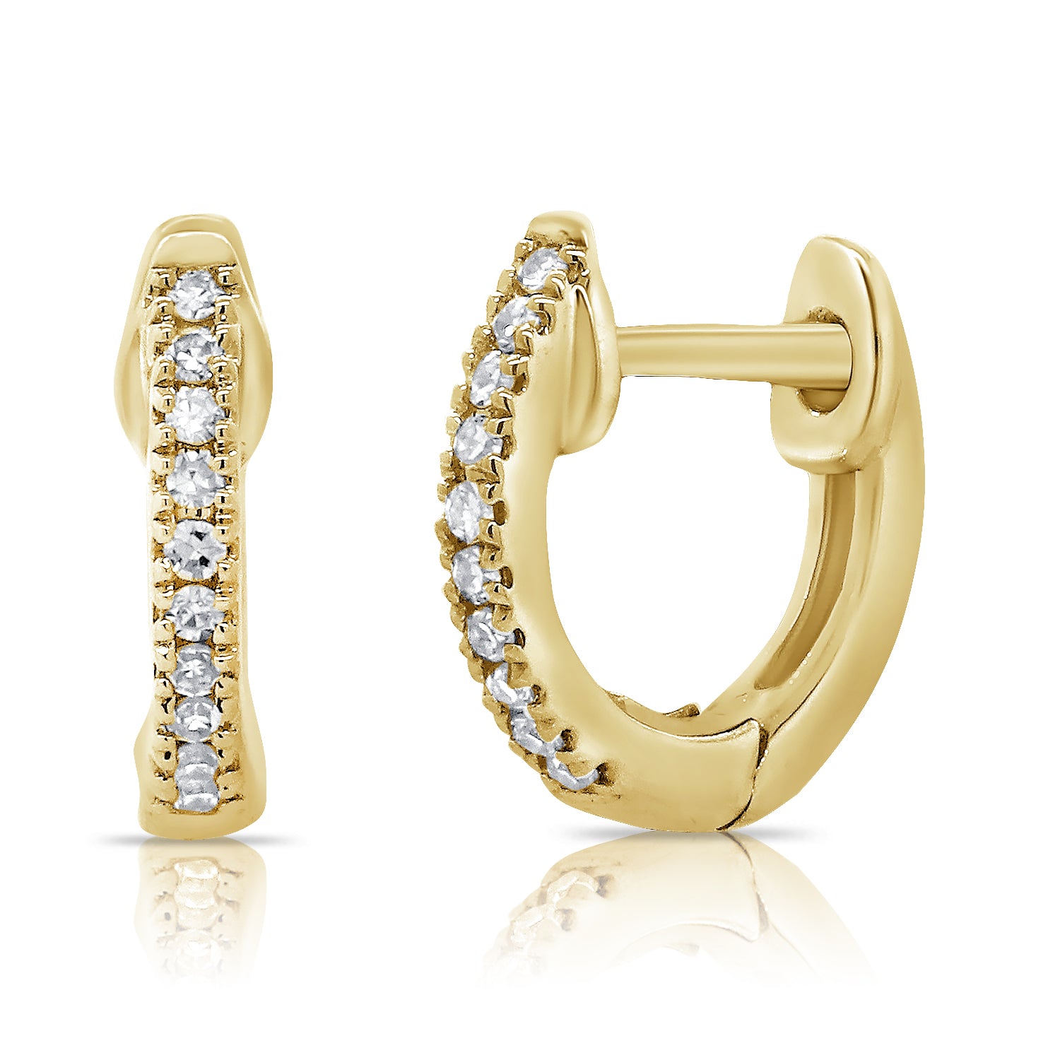 Enhance your look with the understated elegance of Classic Halfway Diamond Set Huggie Hoop Earrings, available in 14K White, Yellow, or Rose Gold. Each earring features a delicate row of 0.05 carats of diamonds, perfectly set along the front half of the huggie hoop. The subtle sparkle of the diamonds adds a touch of sophistication to this timeless design, making these earrings perfect for both everyday wear and special occasions. Comfortable and versatile, these huggie hoops are a must-have addition to any jewelry collection, offering a blend of classic style and modern charm.