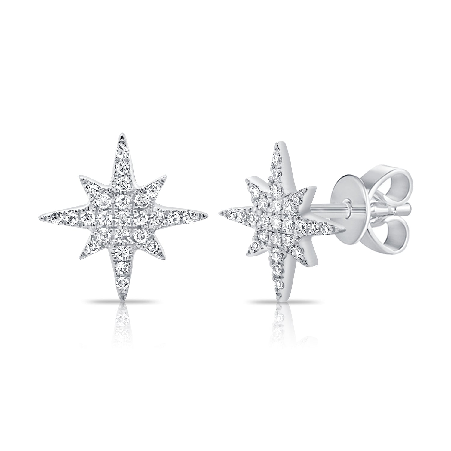 14K Gold Diamond Starburst Stud Earrings | 0.13ct Star Earrings