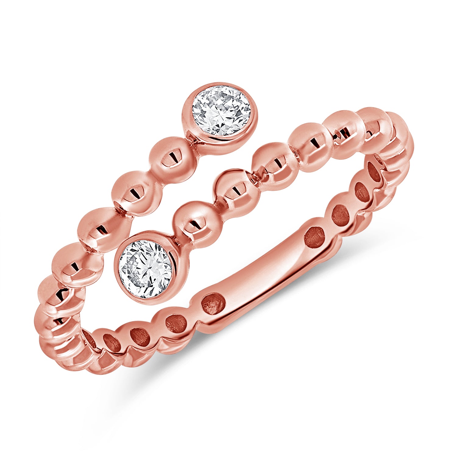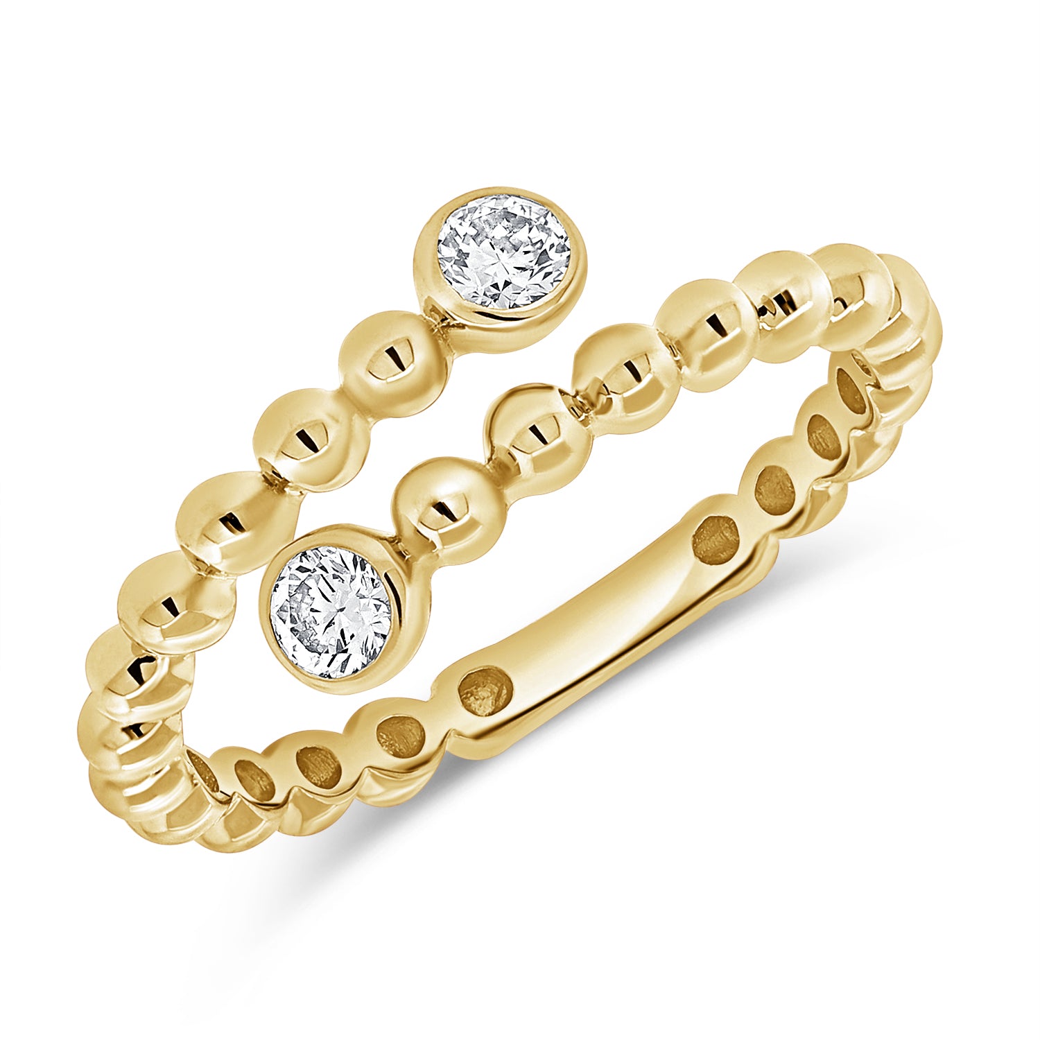 Add refined sparkle to your collection with this 14K Gold Diamond Bezel Wrap Ball Ring. Featuring 0.18 carats of round-cut diamonds bezel-set along a chic beaded band, this open wrap design blends modern style with timeless elegance.