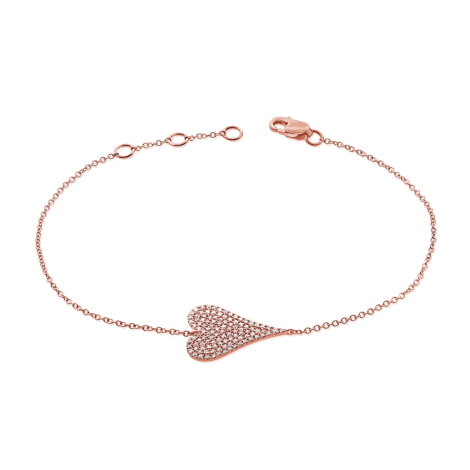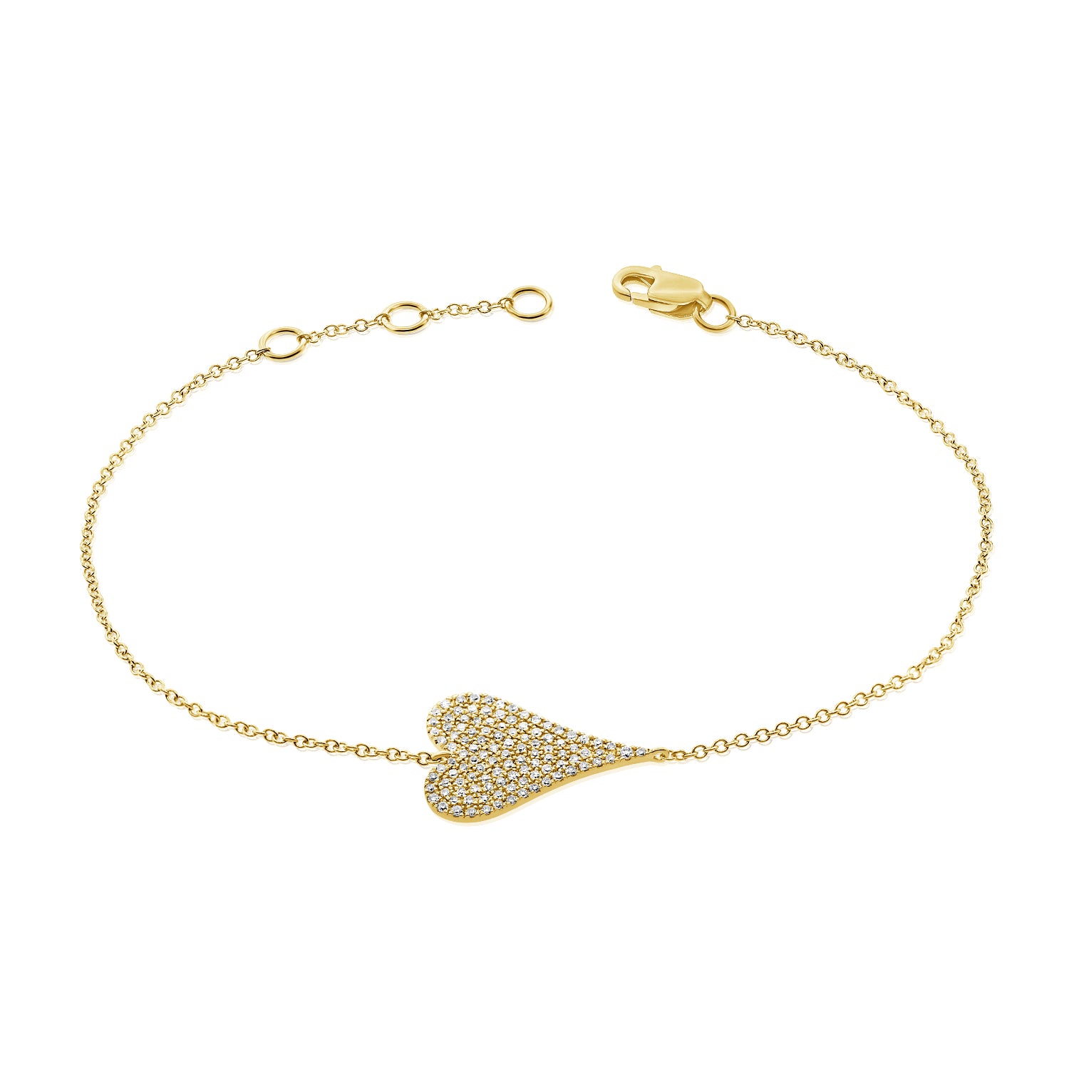 14K Gold 0.20ct Diamond Heart Bracelet – Delicate Love Motif Bracelet