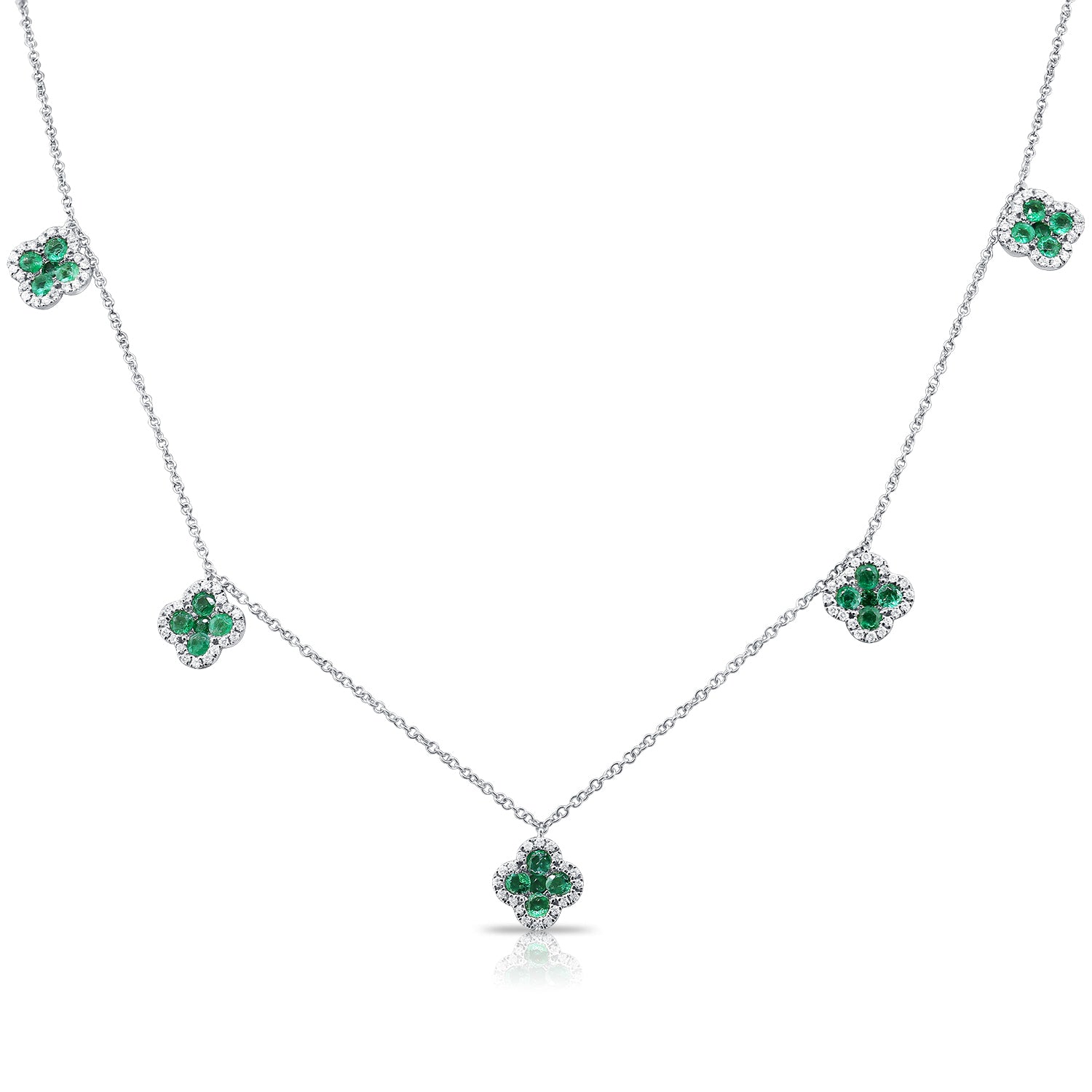 1.75 Carat Emerald and Diamond Clover Station Necklace in 14K Gold