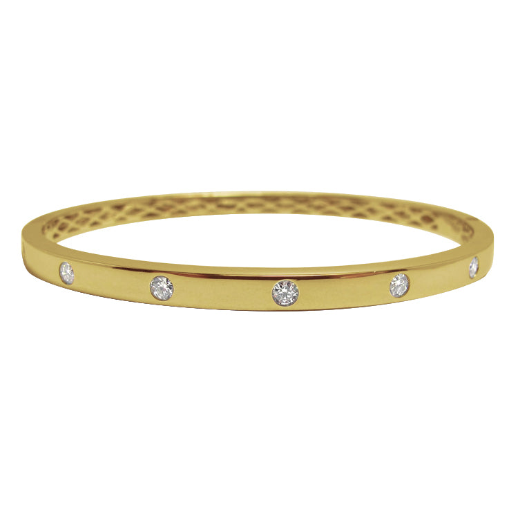 Elevate your wrist with the exquisite allure of our 14K Gold Bangle Bracelet, meticulously crafted to epitomize sophistication and luxury. This stunning piece features a sleek and timeless design, rendered in radiant 14K gold, embellished with a total of 0.45 carats of brilliant round diamonds.