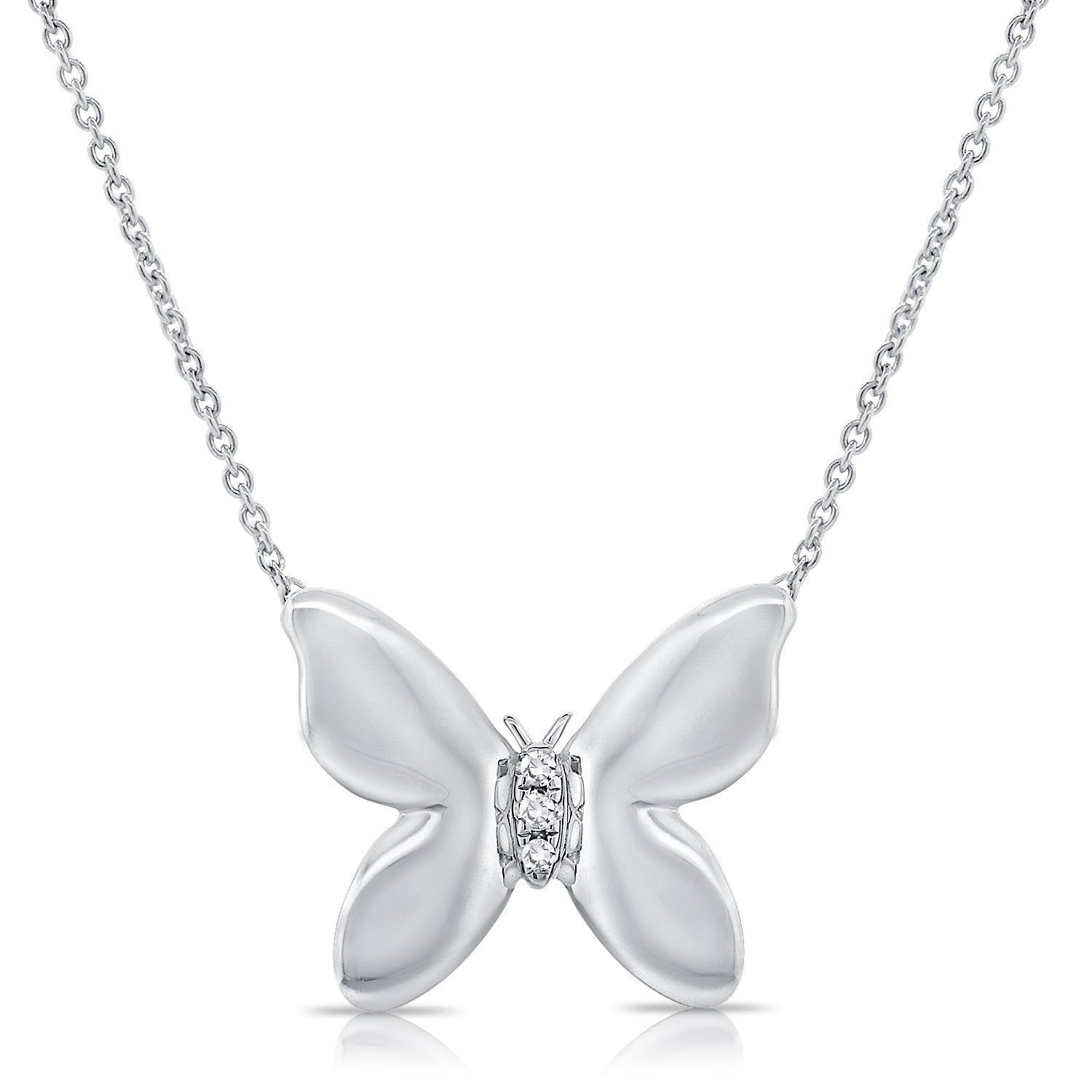 14K Gold Butterfly Pendant Necklace with Diamonds