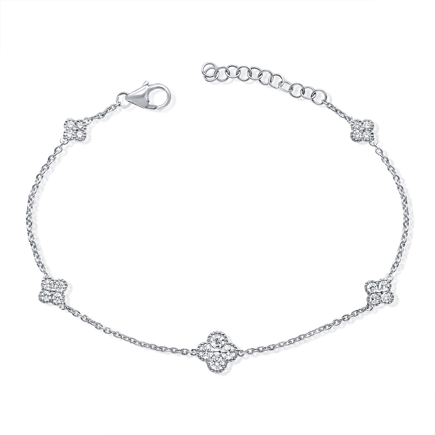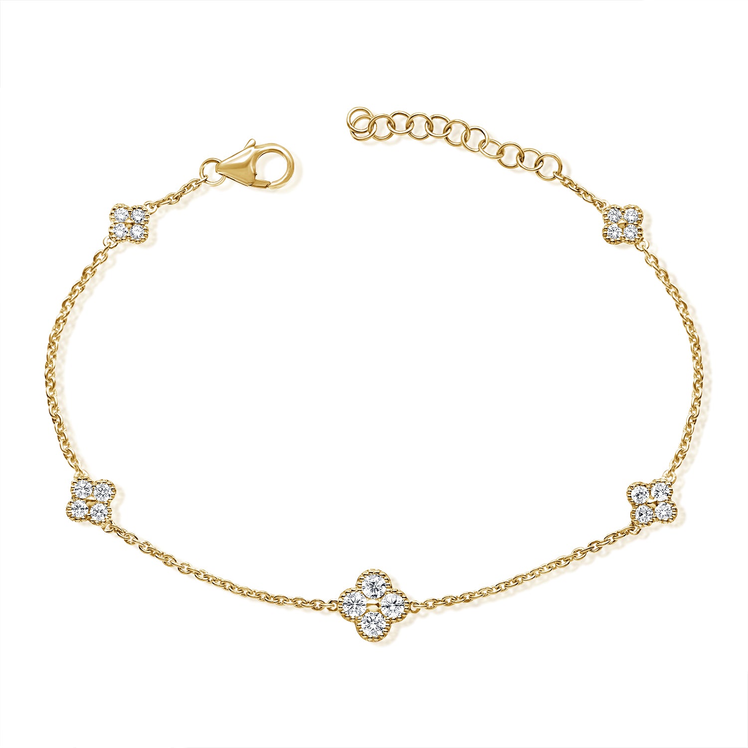 14K Gold Diamond Clover Bracelet • 0.62ct Lucky Clover Bracelet