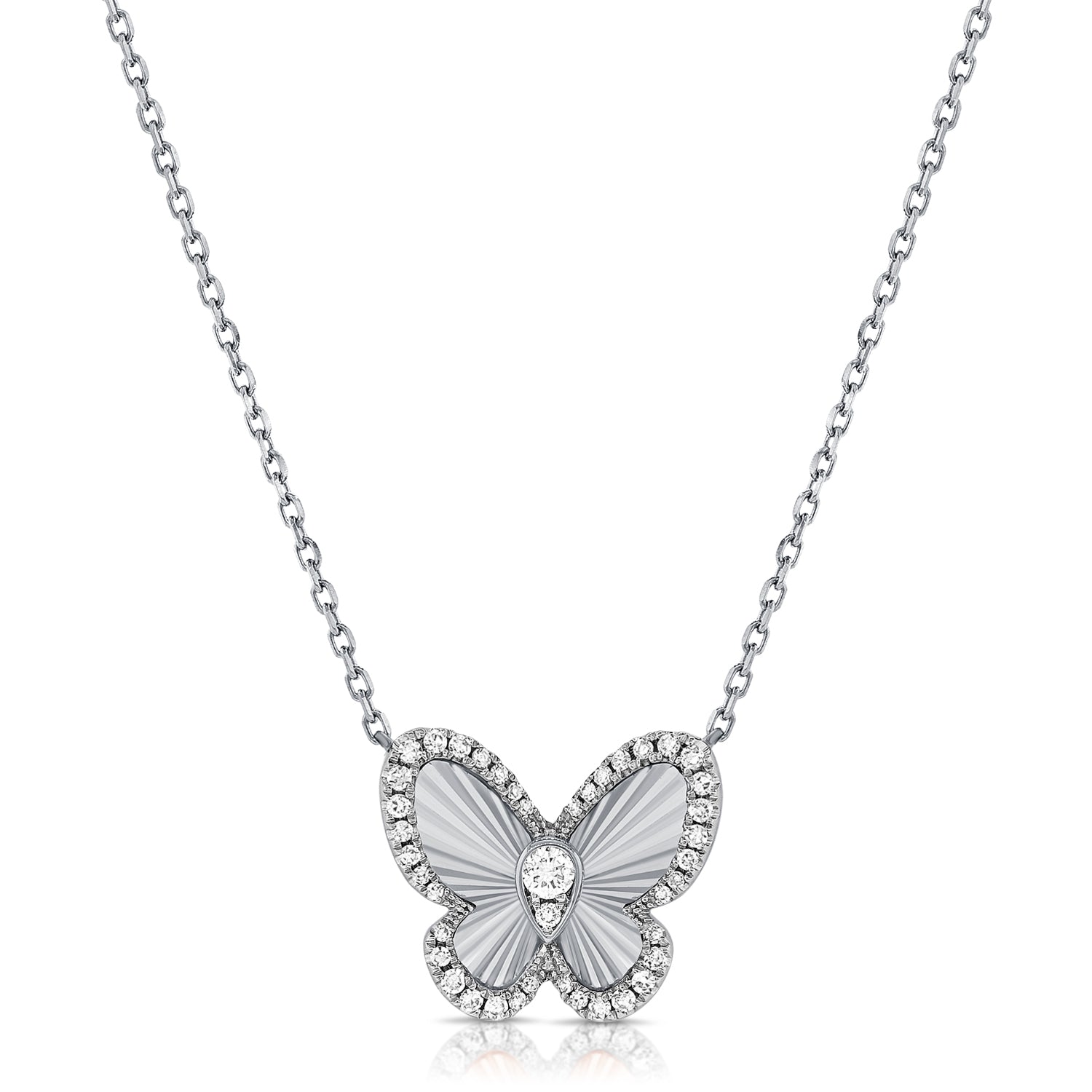 Celebrate beauty with this 0.26 carat diamond fluted butterfly pendant, crafted in 14K gold. Delicate fluted wings and sparkling diamonds create timeless elegance. Available in white, yellow, or rose gold-perfect for gifting or everyday style.
