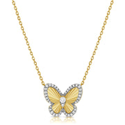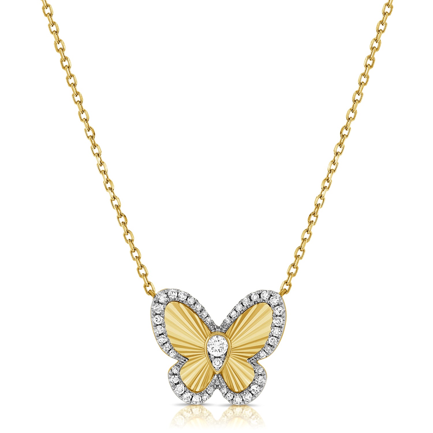 14K Gold Diamond Fluted Butterfly Pendant Necklace -0.26 Carats