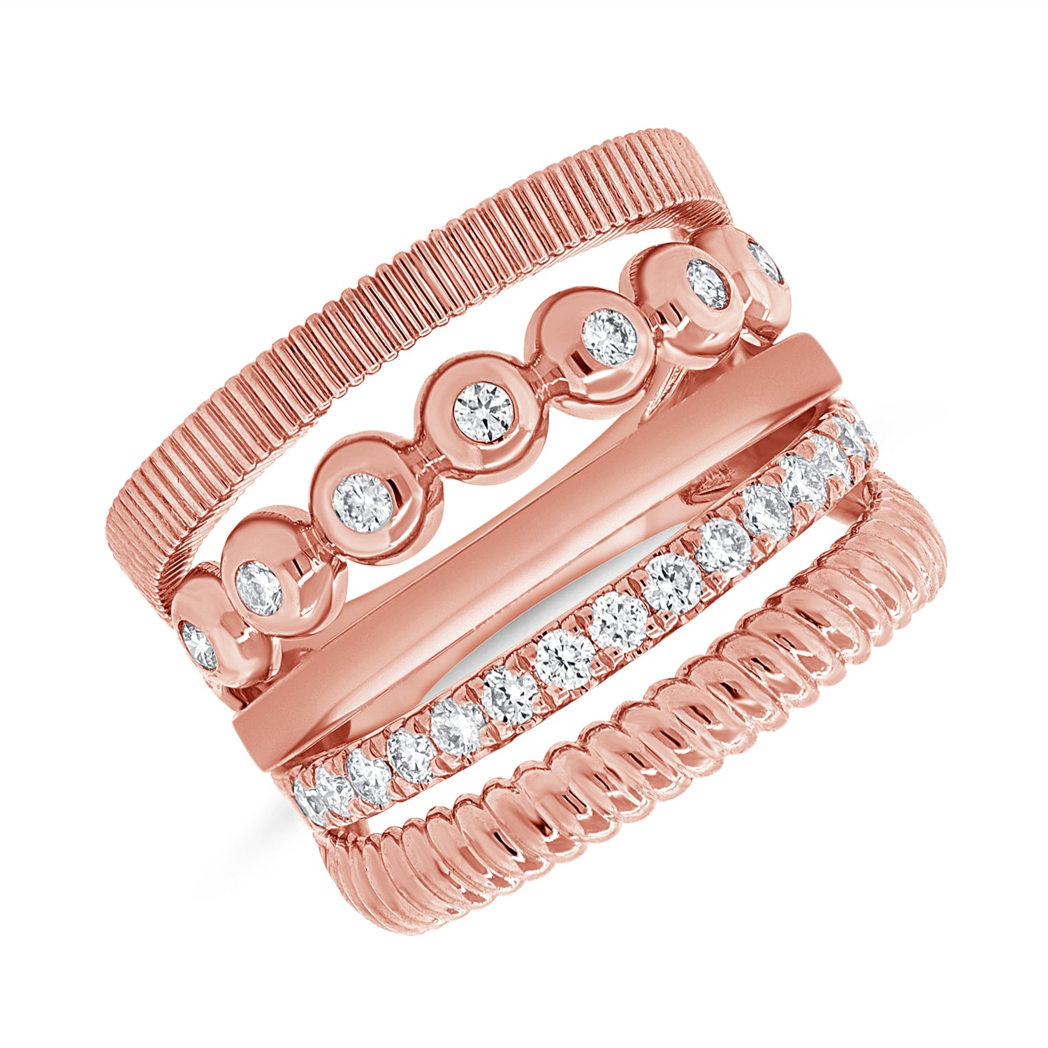 14K Gold 0.48ct Diamond Fluted Cocktail Ring – 16.5mm Wide Statement Ring