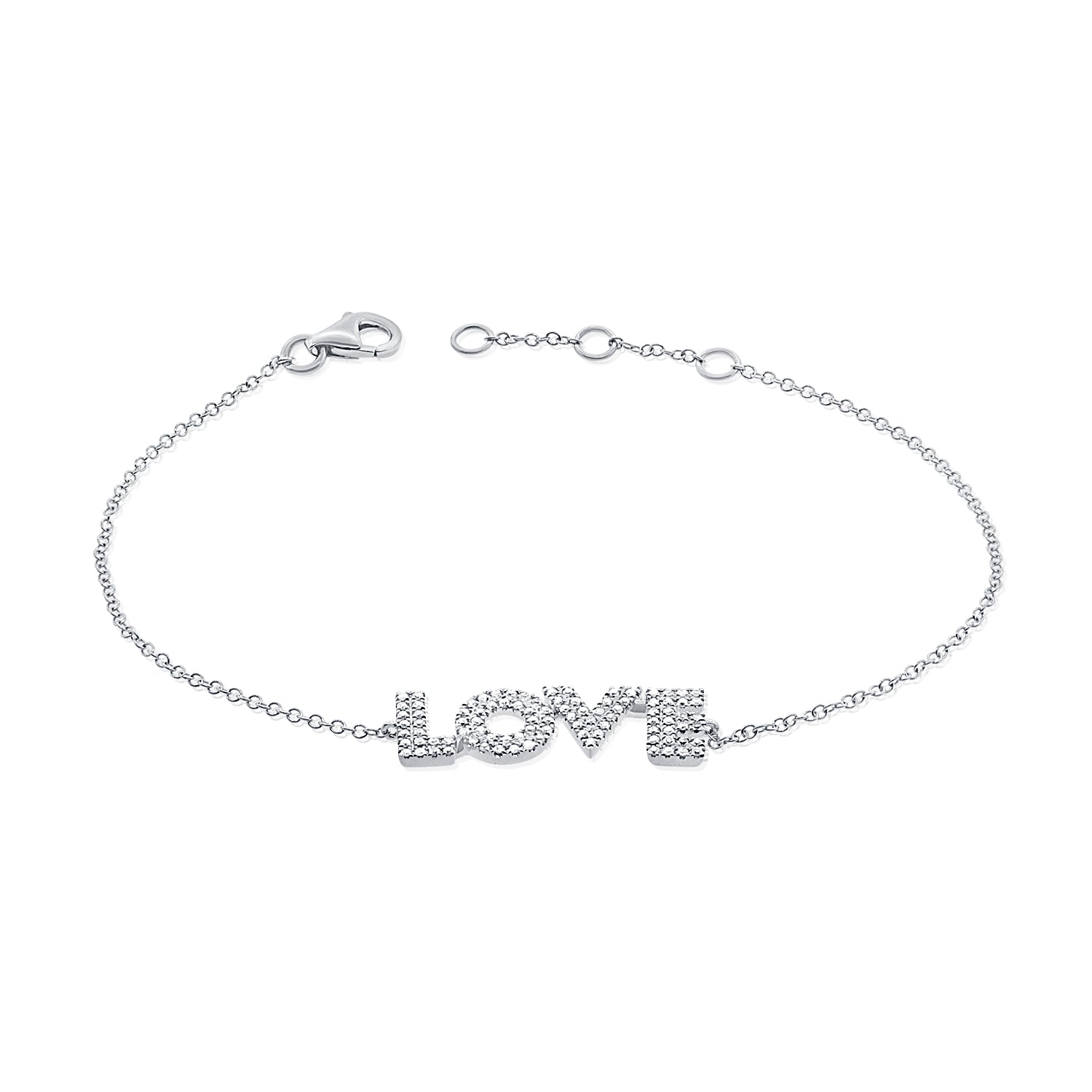 Celebrate love in its purest form with this stunning 14K Gold Diamond "LOVE" Bracelet. Featuring 0.25 carats of radiant diamonds set in the word "LOVE," this piece is a timeless expression of affection and elegance. Available in white, yellow, or rose gold, its delicate chain is adjustable for the perfect fit. Whether as a romantic gesture, a gift for someone special, or a self-love treat, this bracelet is a meaningful and stylish addition to any jewelry collection.