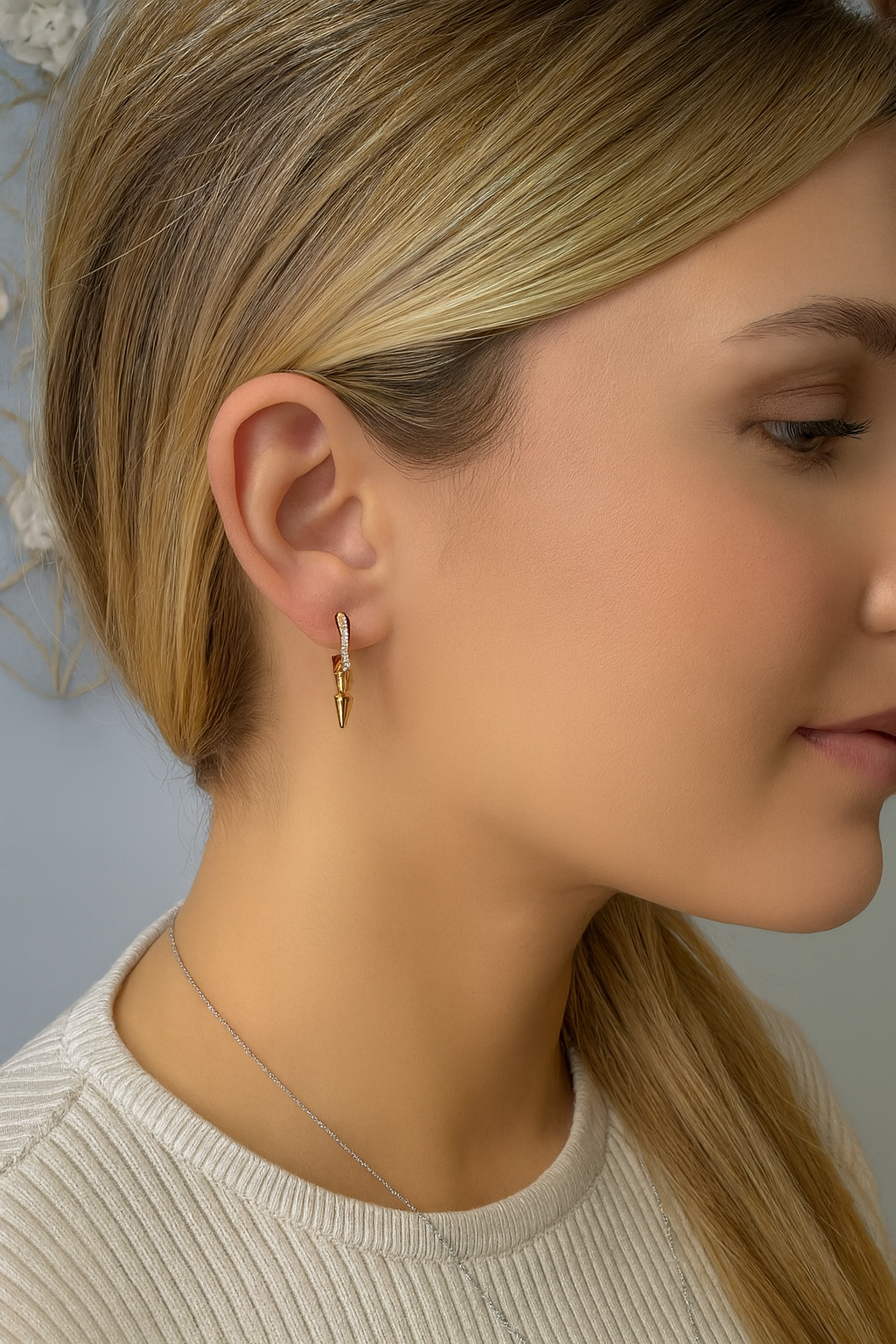 Add edge to your elegance with these 14K Gold Diamond Spike Huggie Earrings. Featuring 0.05 carats of pave-set diamonds and bold spike details. Crafted in 14K white, yellow, or rose gold, they are ideal for solo wear or stacking.