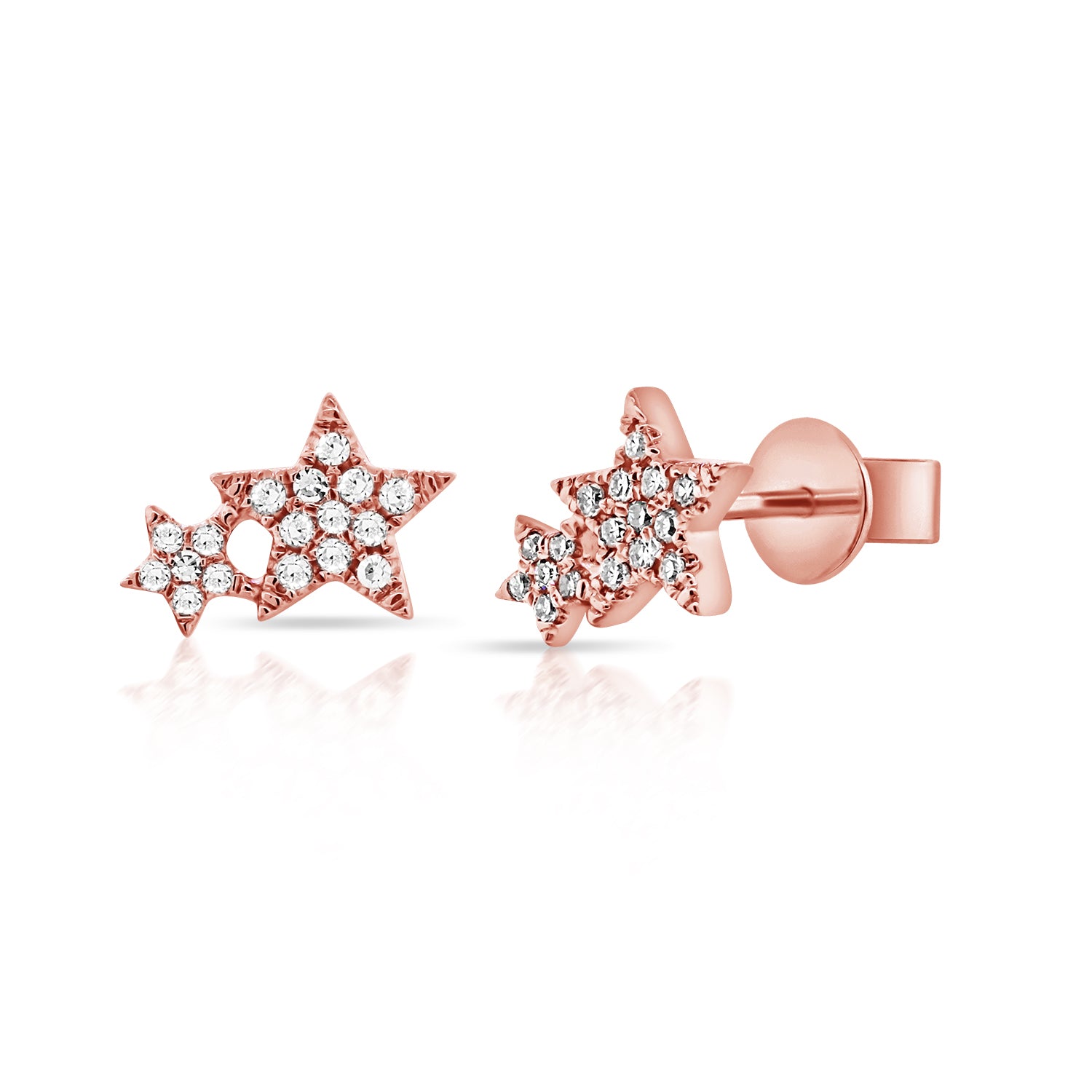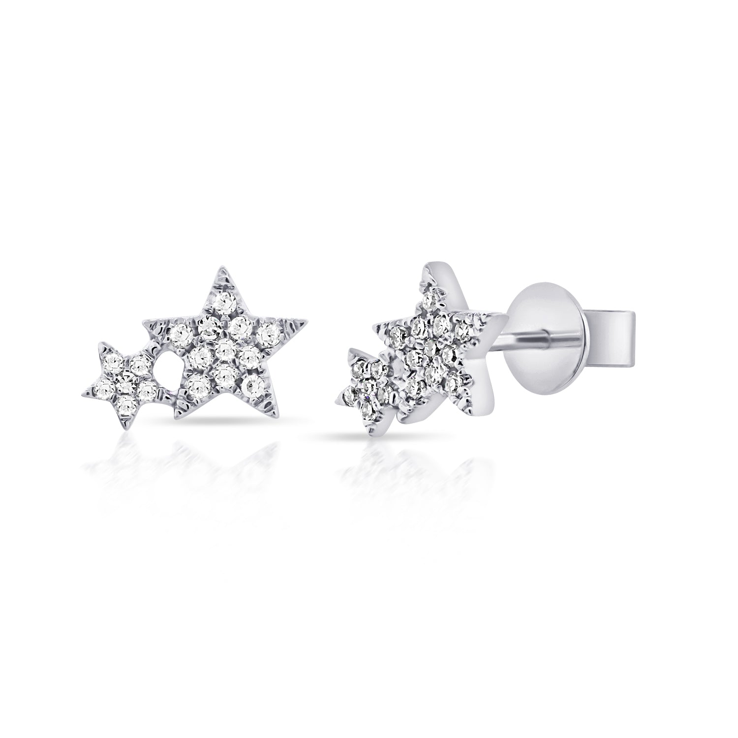 Shine bright with these whimsical 14K Gold Diamond Star Stud Earrings. Featuring a playful double star design and 0.12 carats of brilliant pav-set diamonds, they radiate light and charm from every angle. Available in white, yellow, or rose gold with secure push-back posts, these celestial studs add a dreamy touch to any look. Perfect for gifting or everyday sparkle.