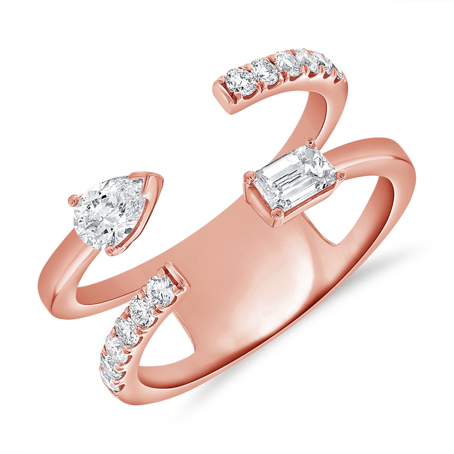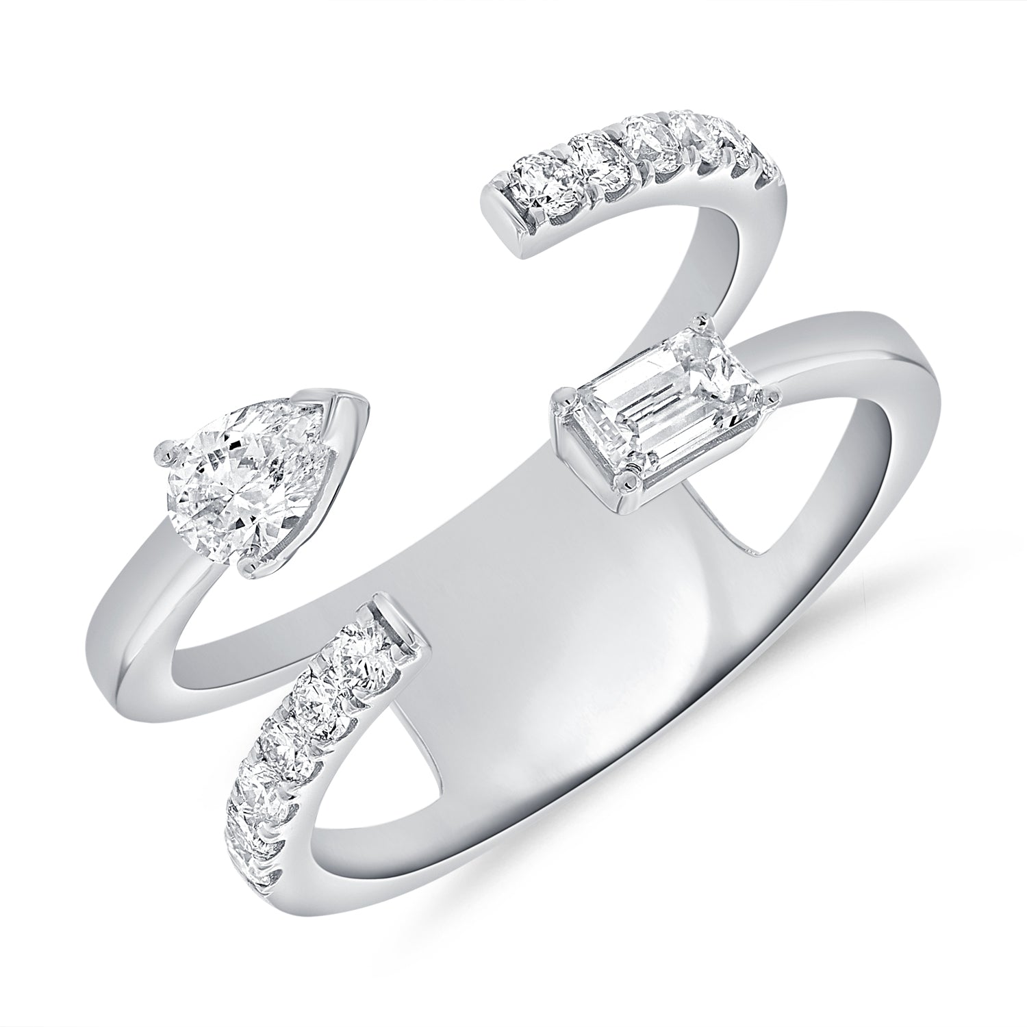 14K Gold Diamond Wrap Ring (0.59 Carat) – Pear, Emerald & Round Cut Diamonds in Open Band Design